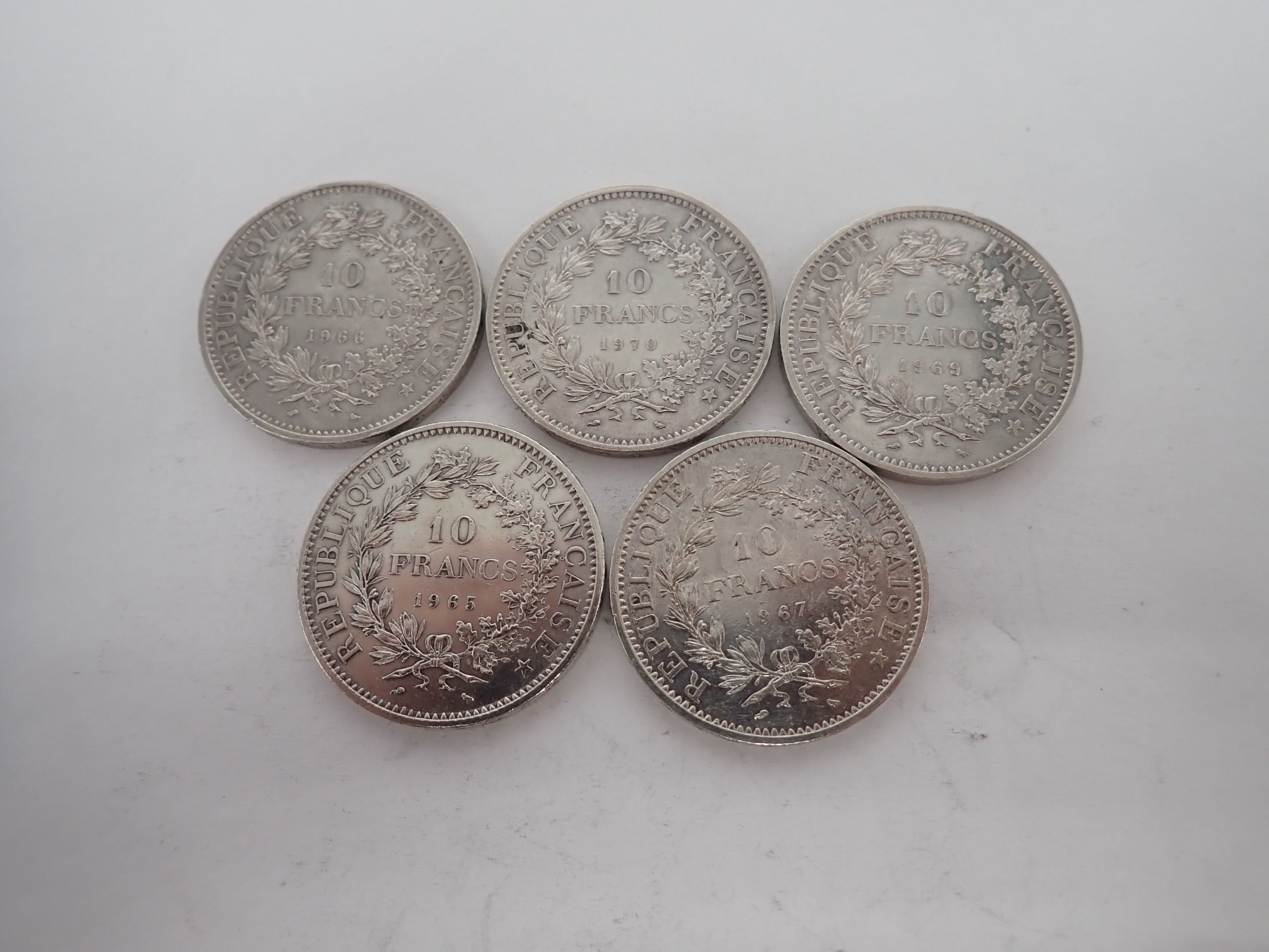 5 pieces of 10 francs silver, hercule, Weight : 124,9 grs