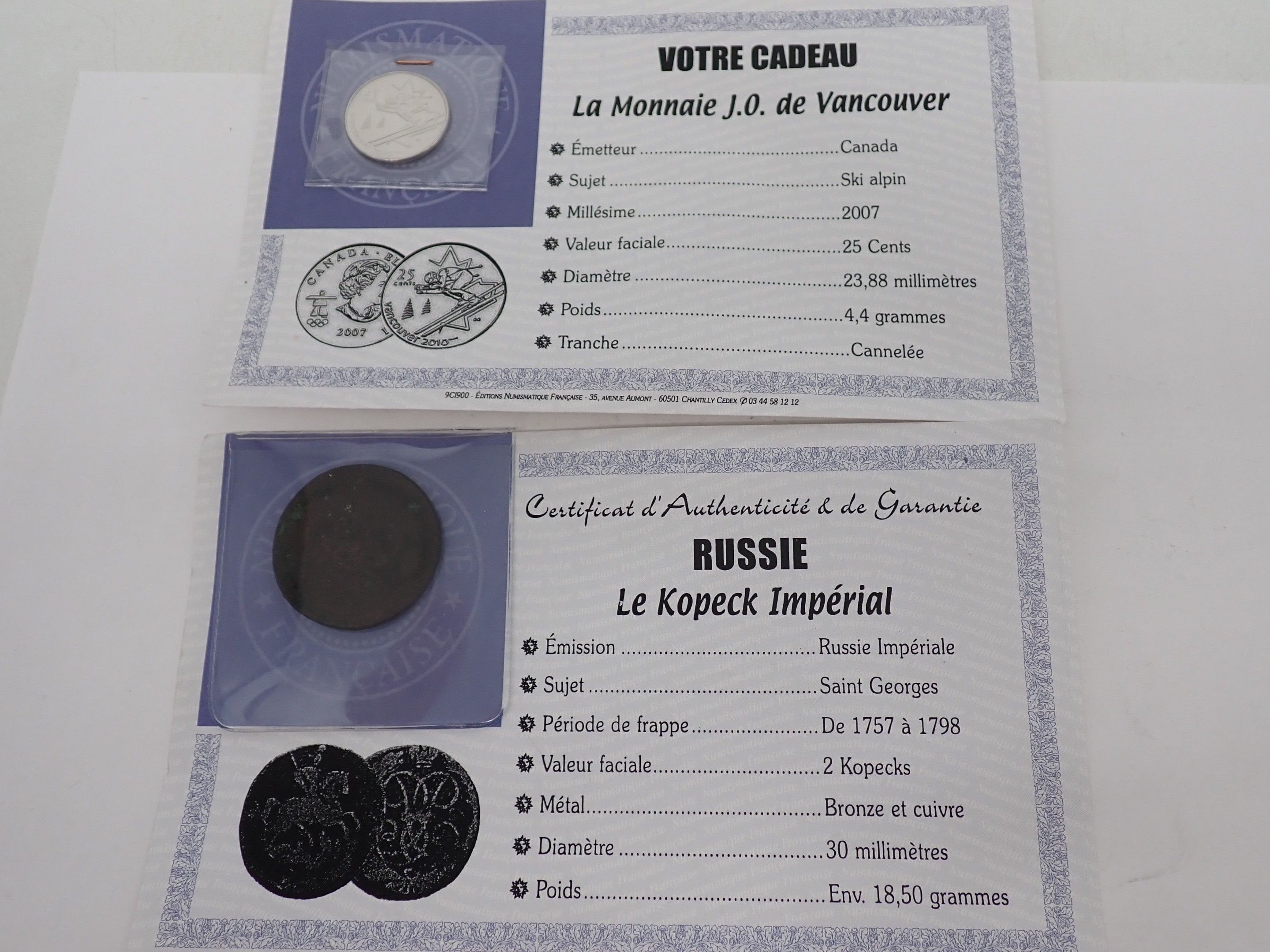 Lot including 1 25-cent coin Vancouver 2007 Olympic Games and 1 2-kopeck coin