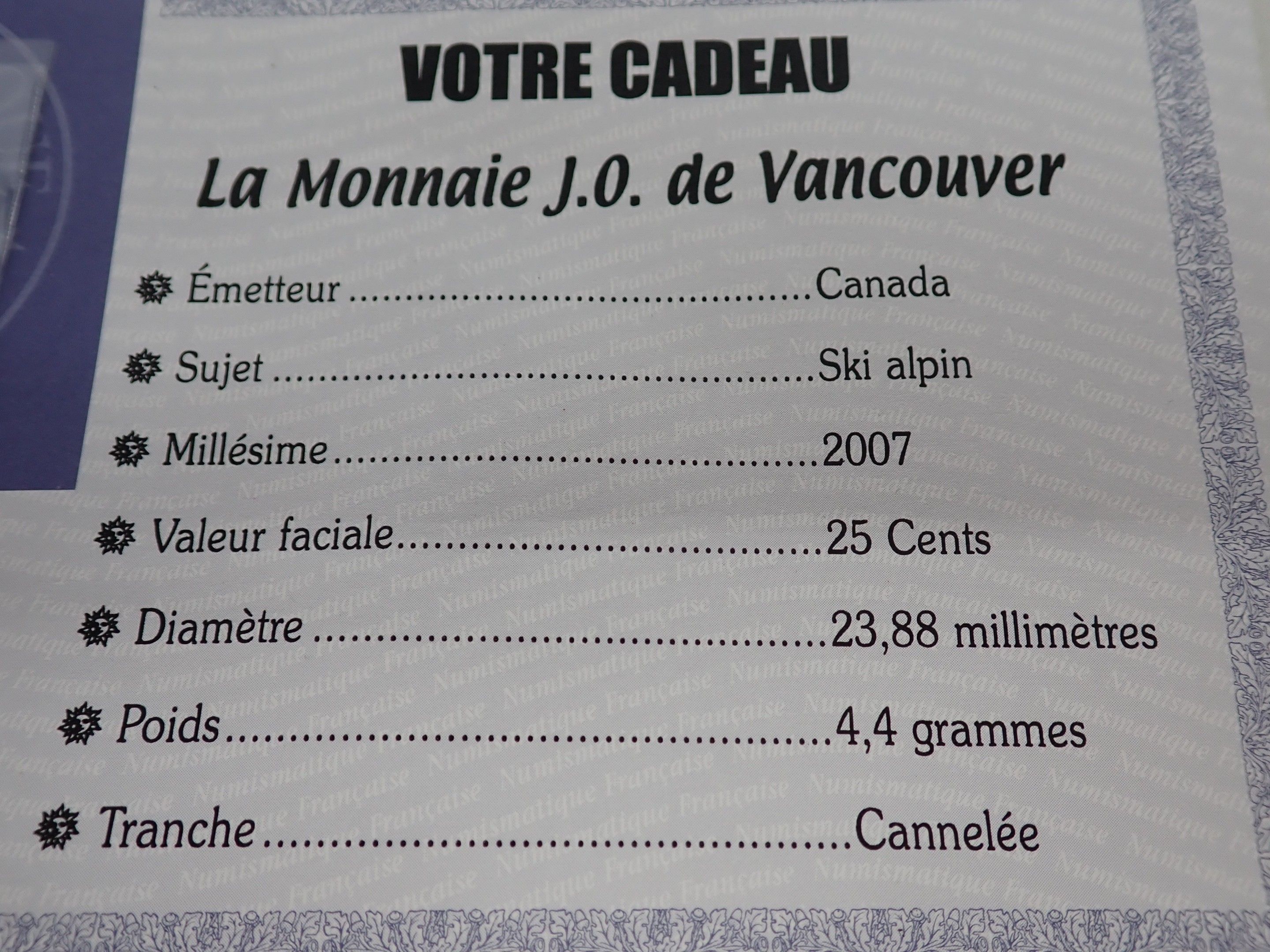 Lot including 1 25-cent coin Vancouver 2007 Olympic Games an…