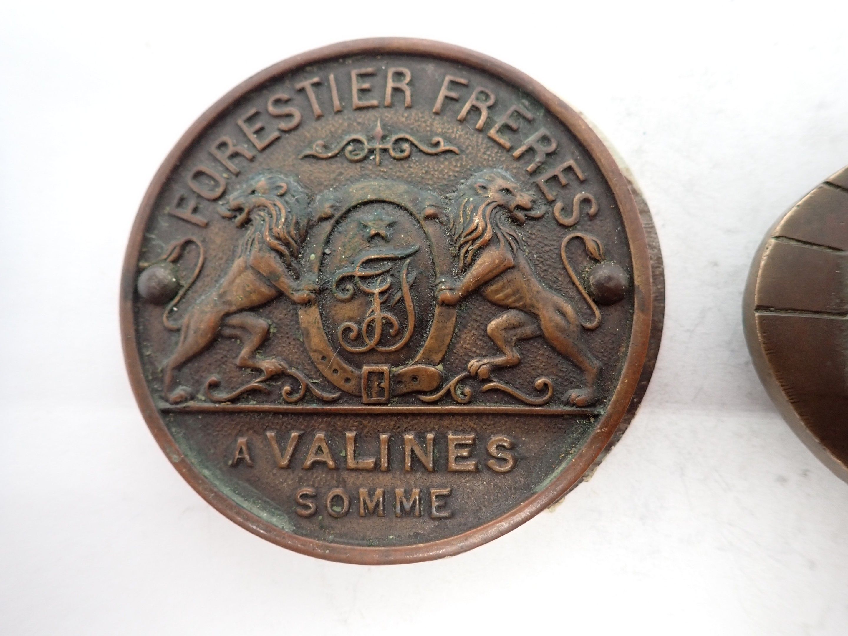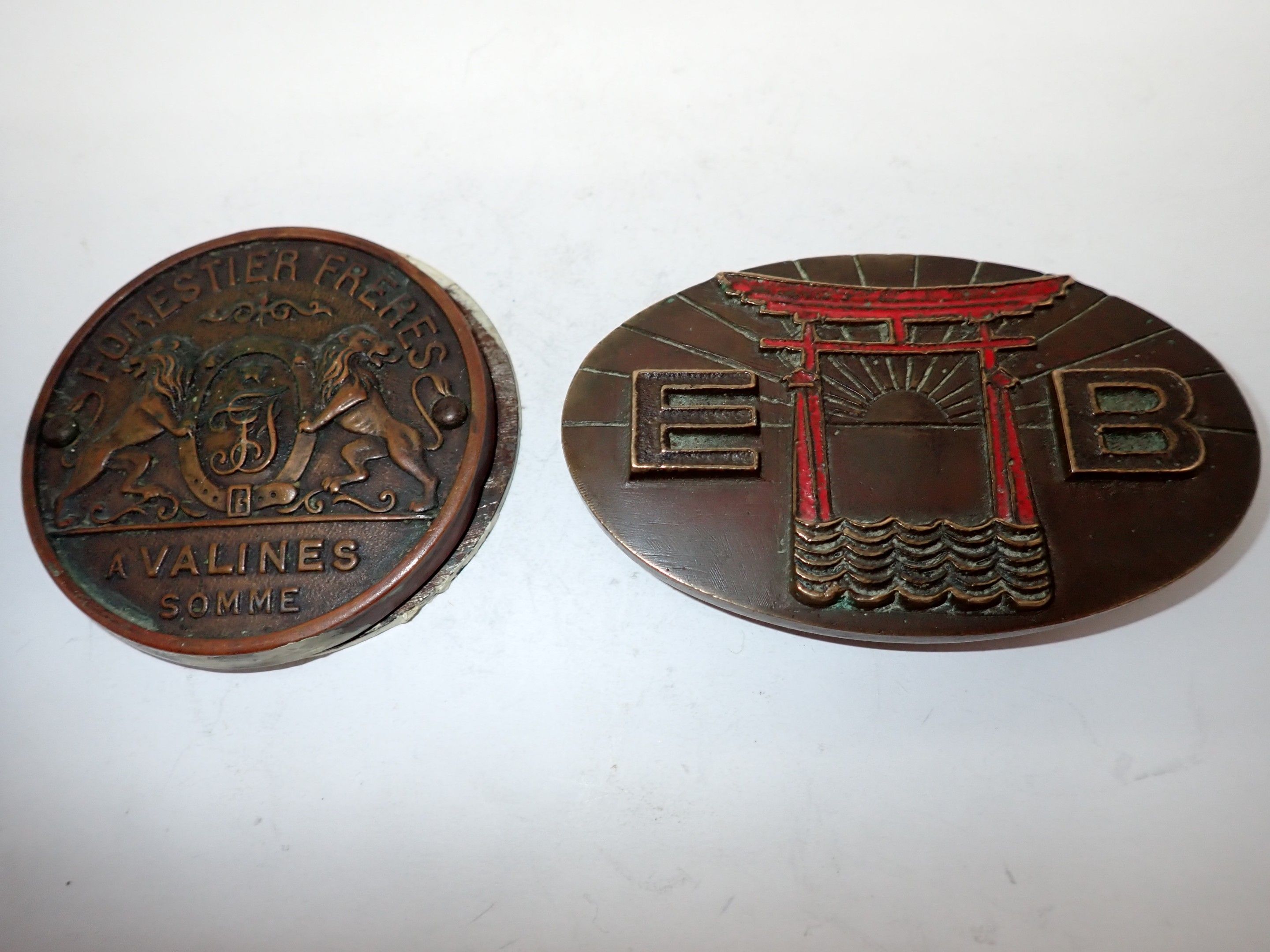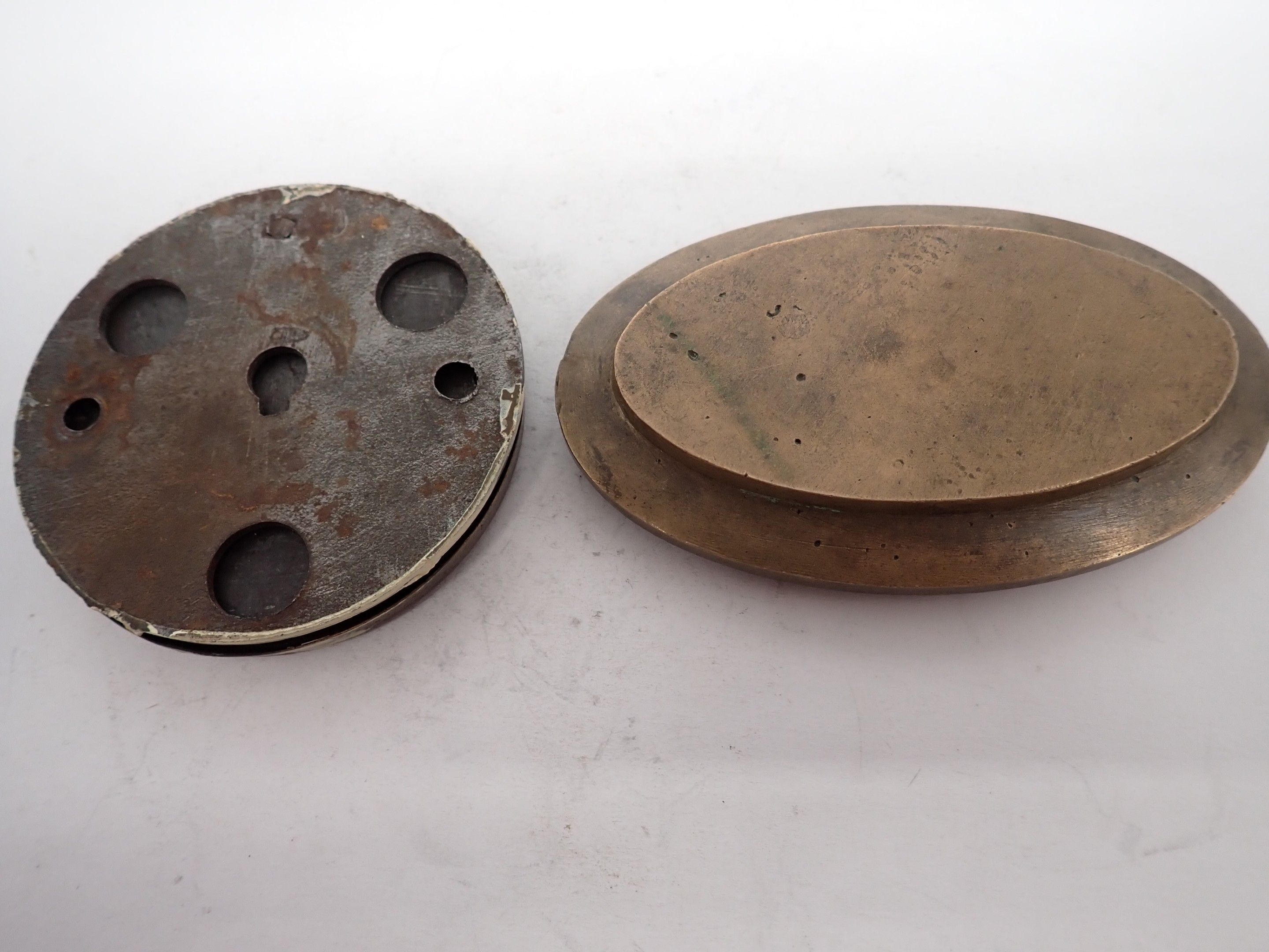 Lot including a bronze medal and a safe lock cover, dim. 10x5,8cm and 7x7cm