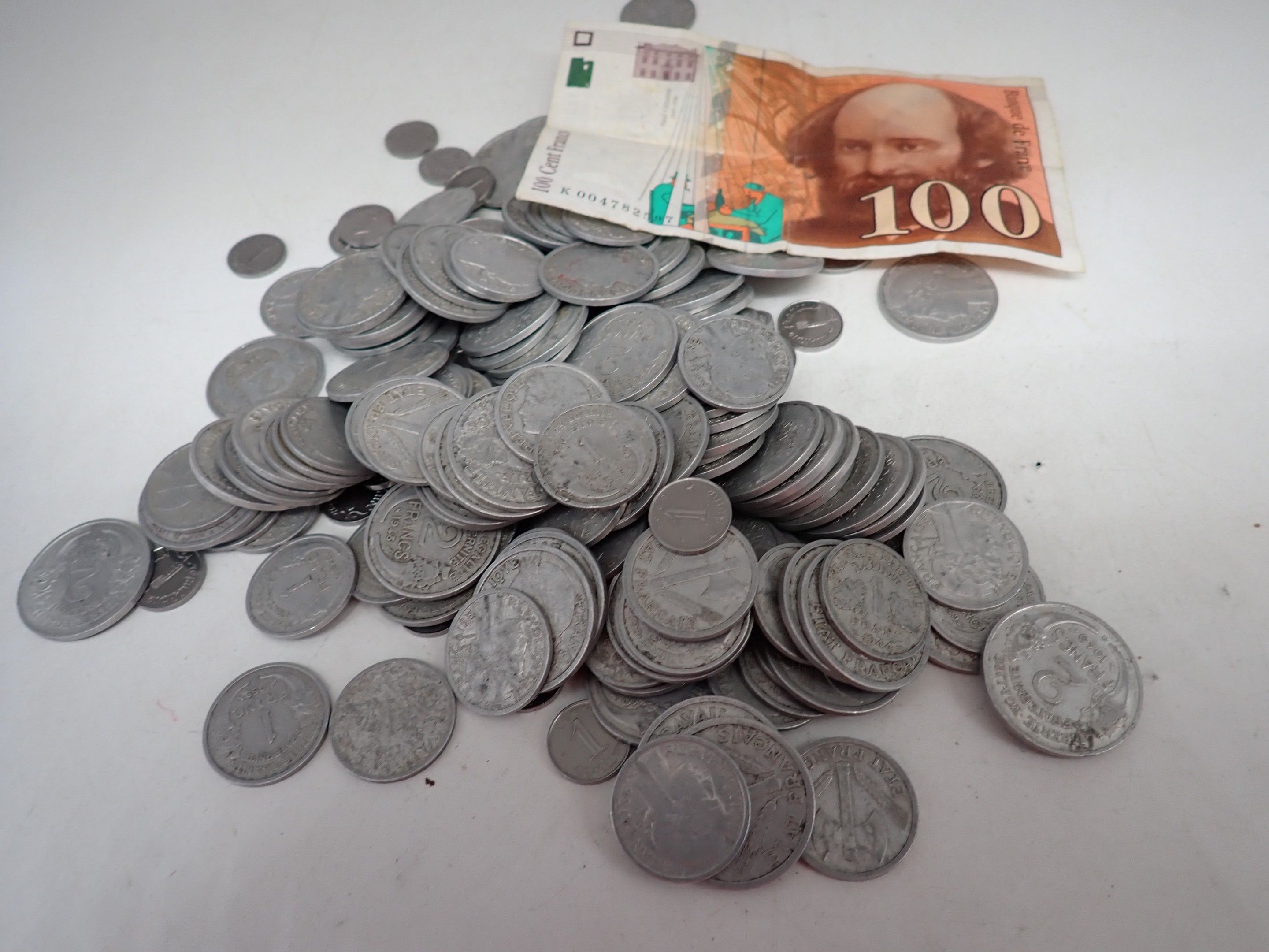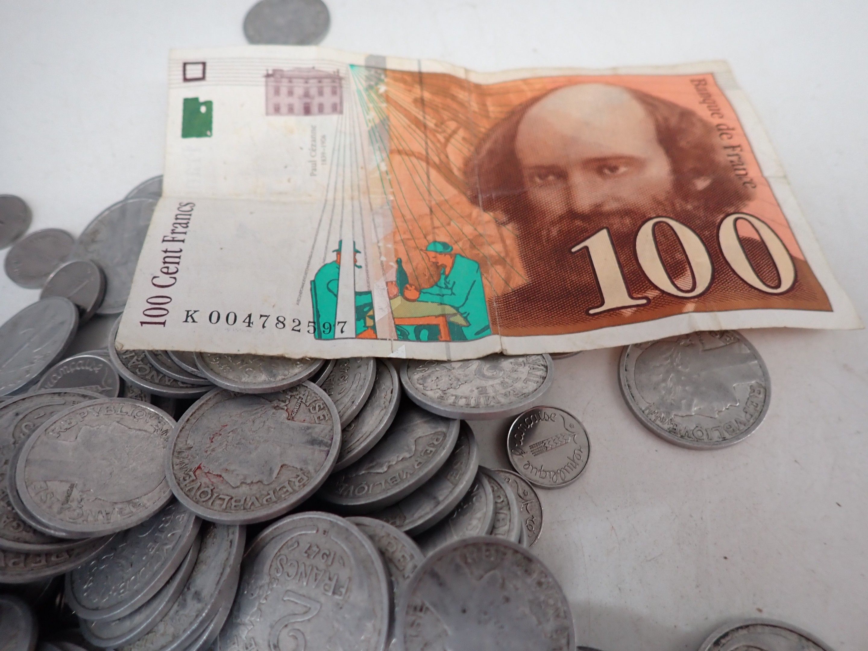 Lot of coins mainly from France, including a 100 franc Cézanne note (accidents)