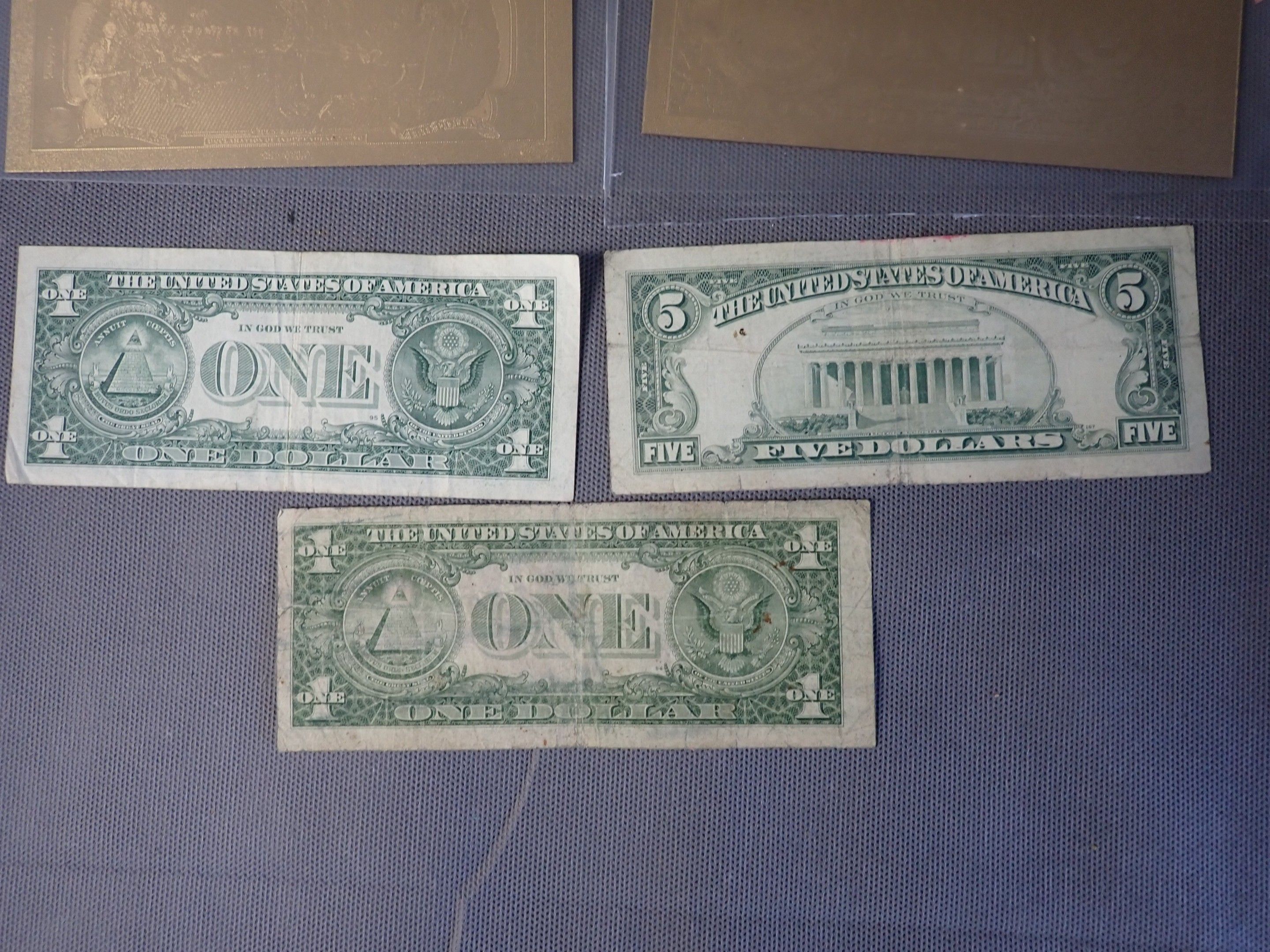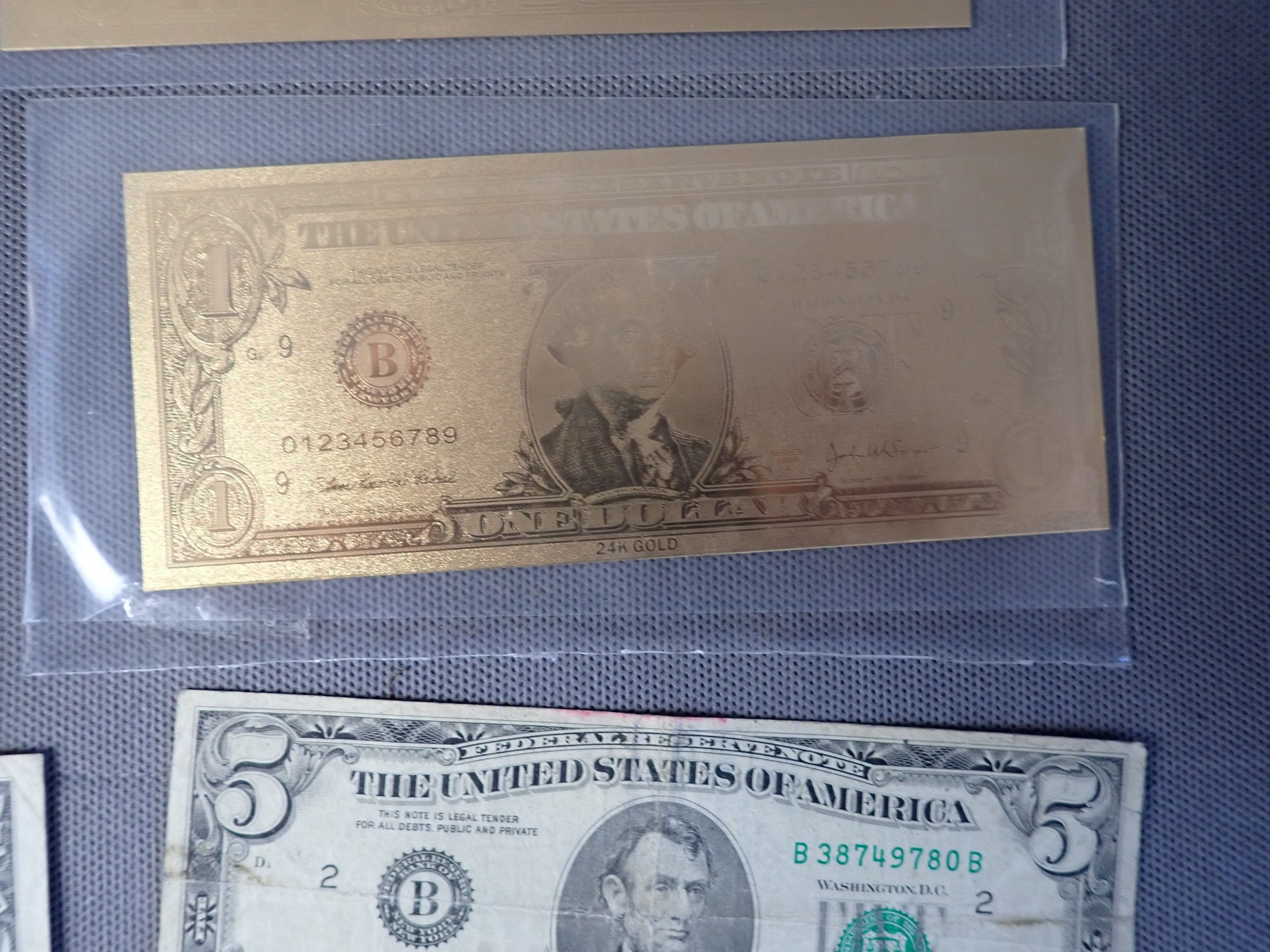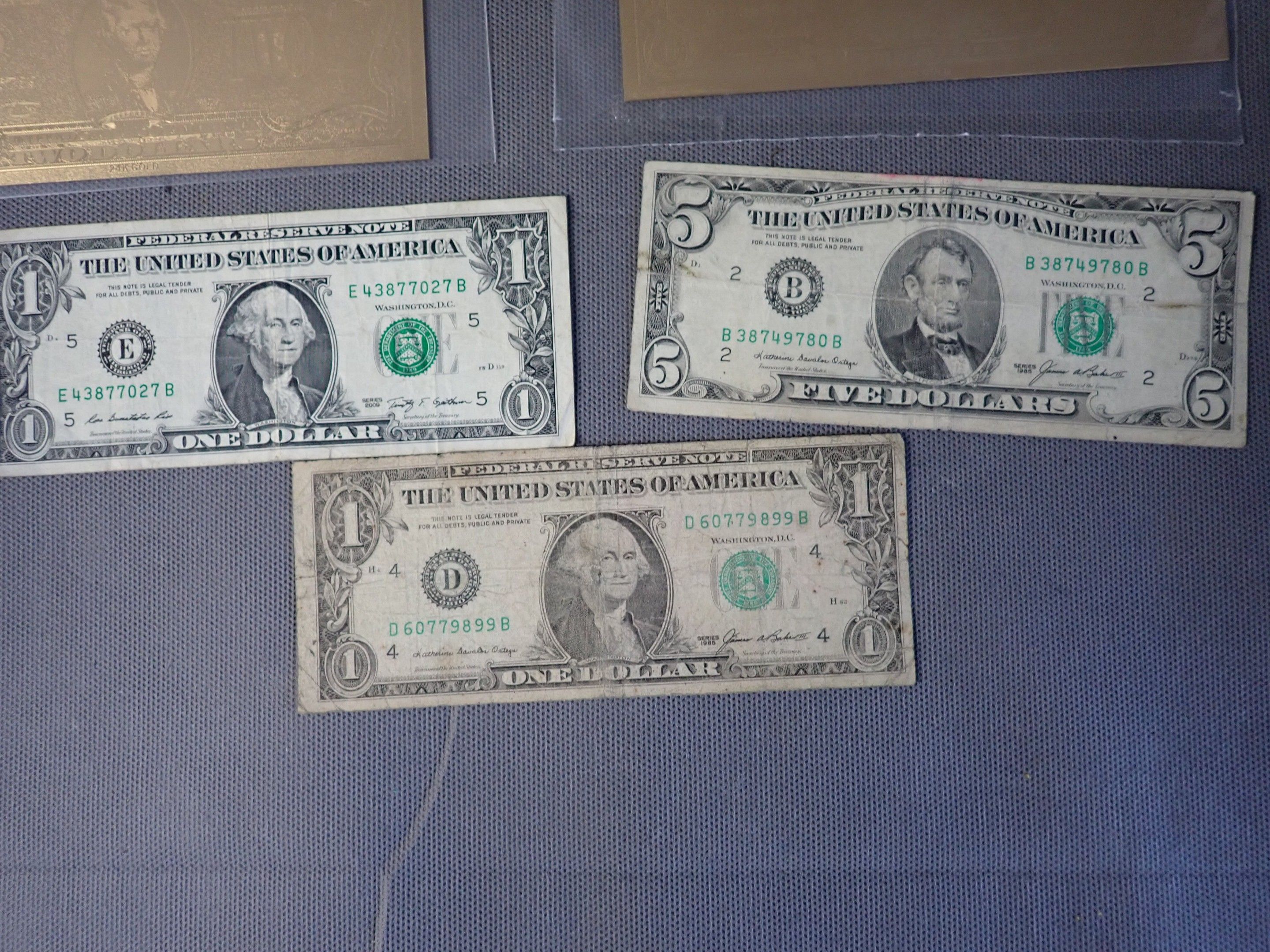 6 gold US dollar notes, 2 one-dollar notes and 1 five-dollar…