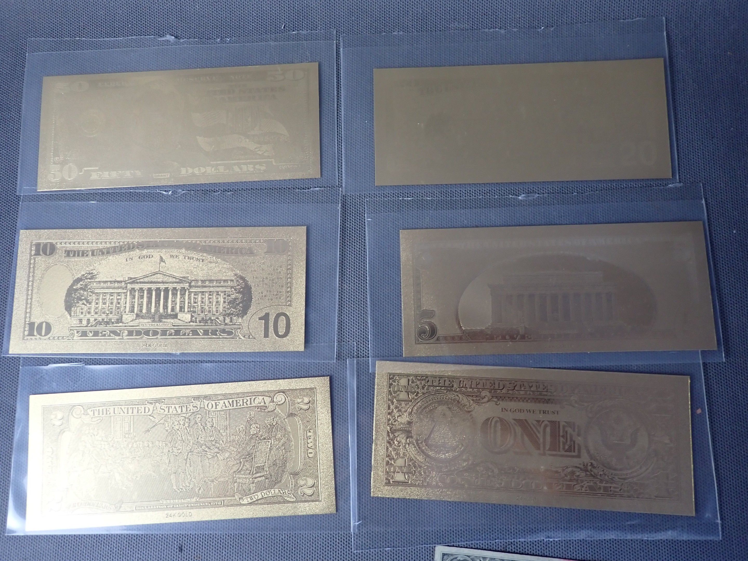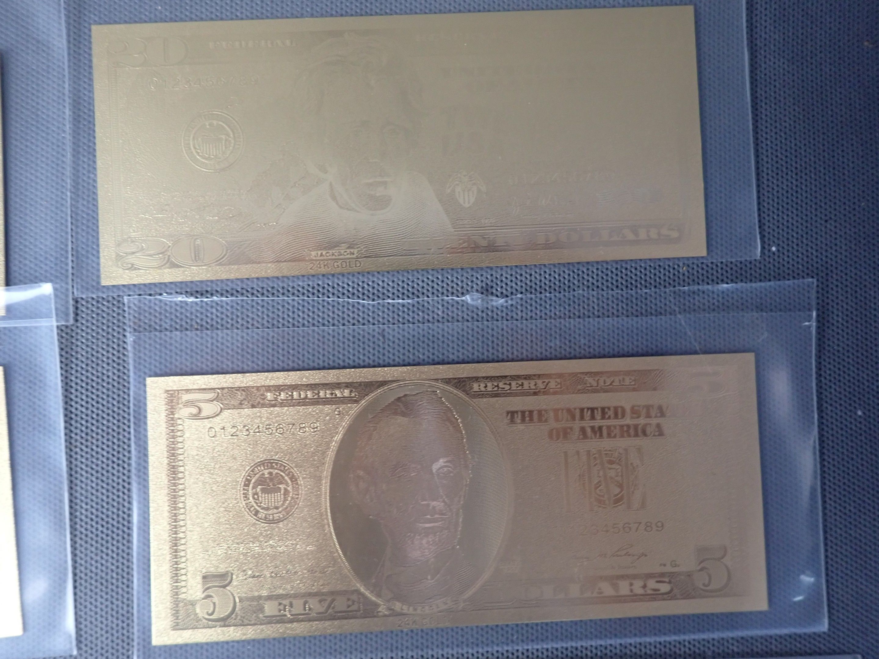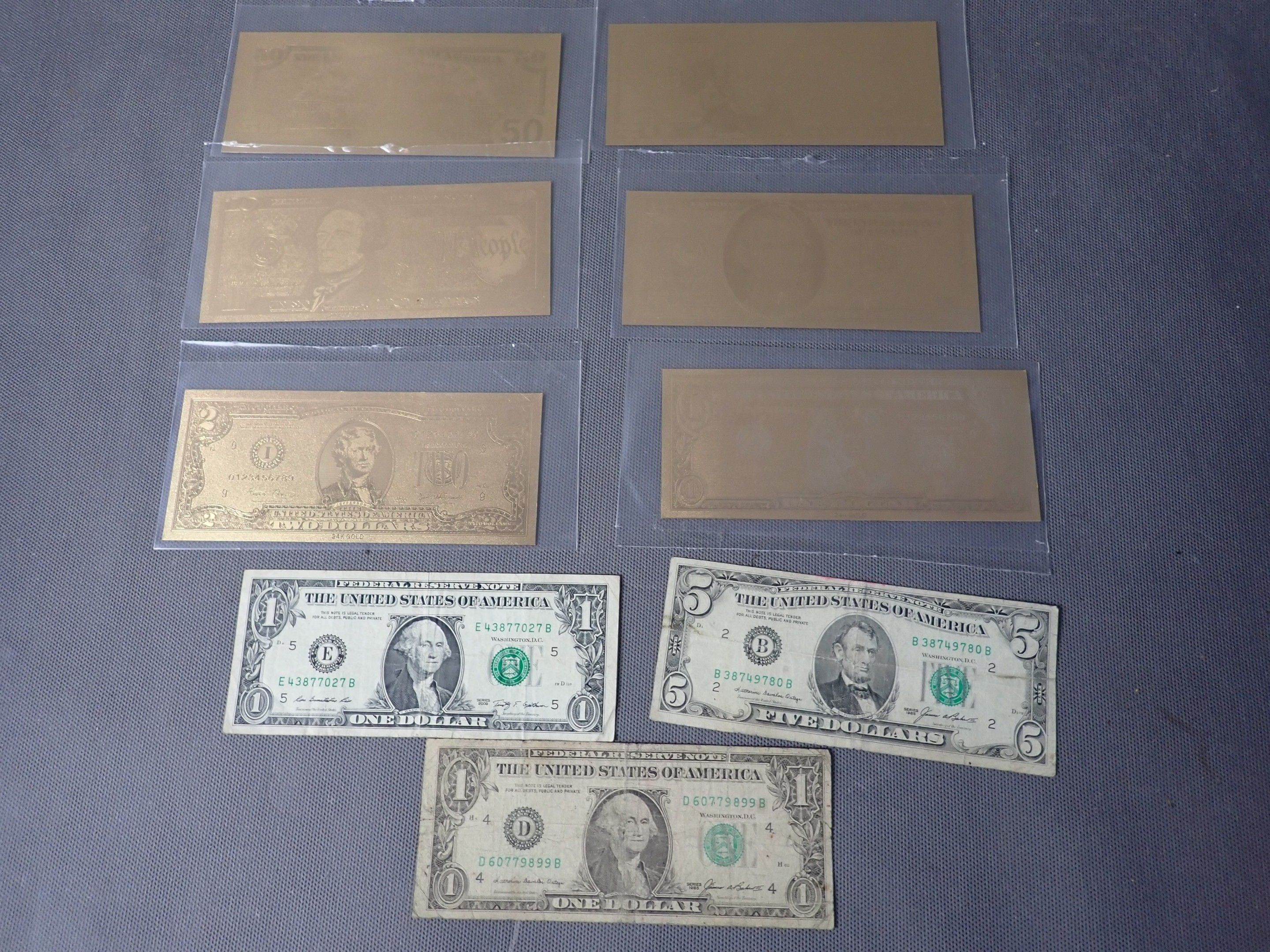 6 gold US dollar notes, 2 one-dollar notes and 1 five-dollar…