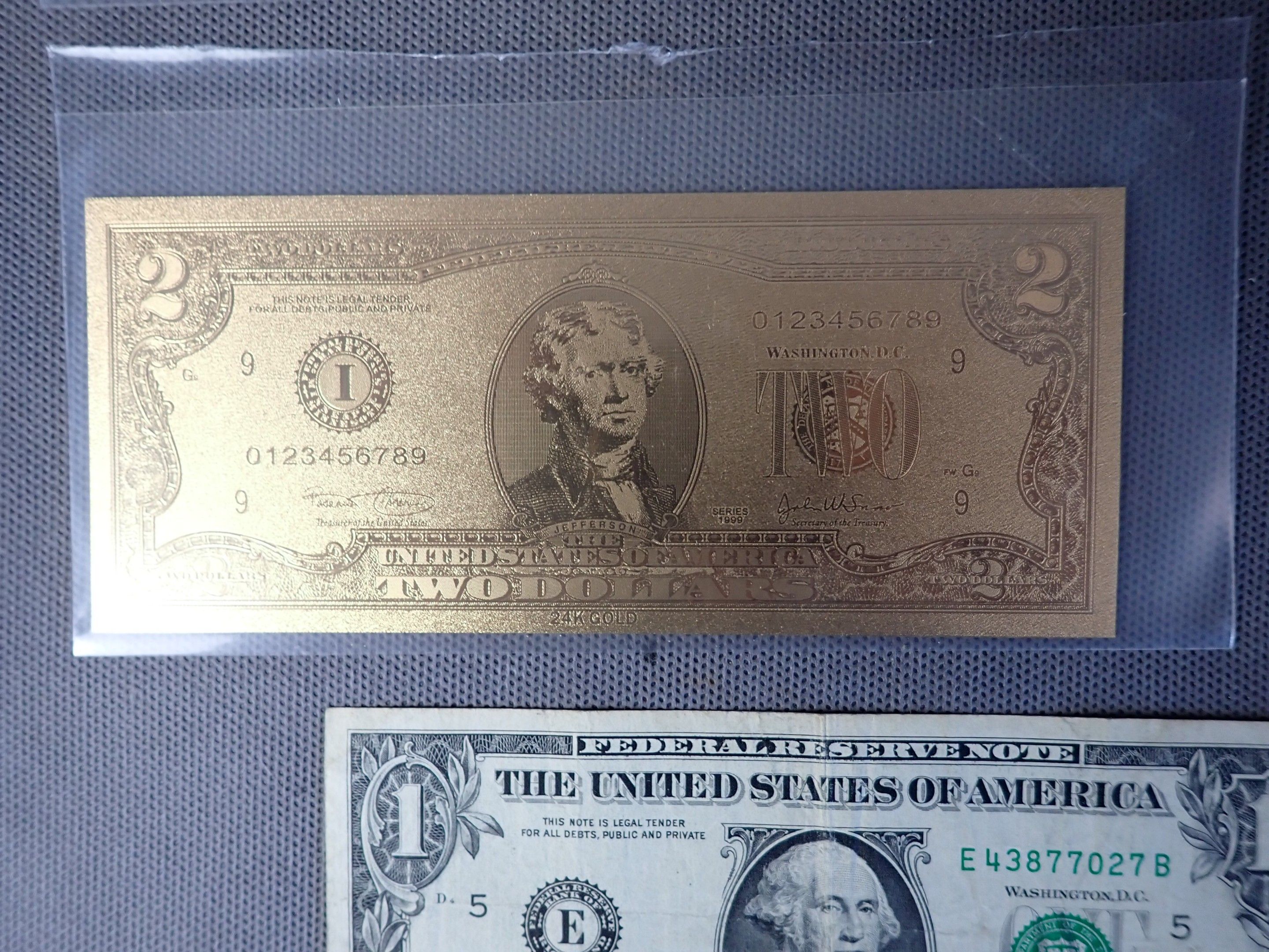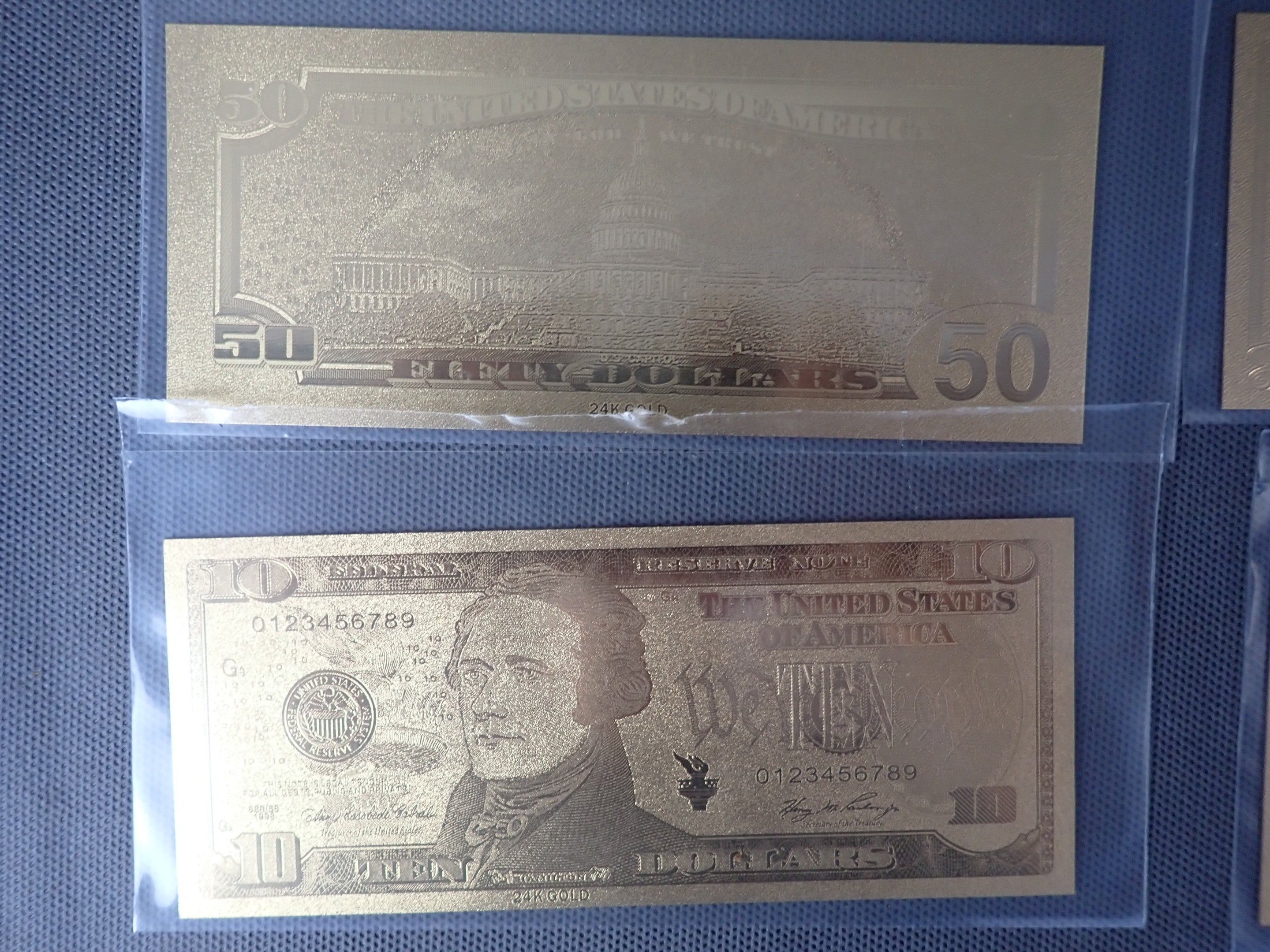 6 gold US dollar notes, 2 one-dollar notes and 1 five-dollar note are enclosed