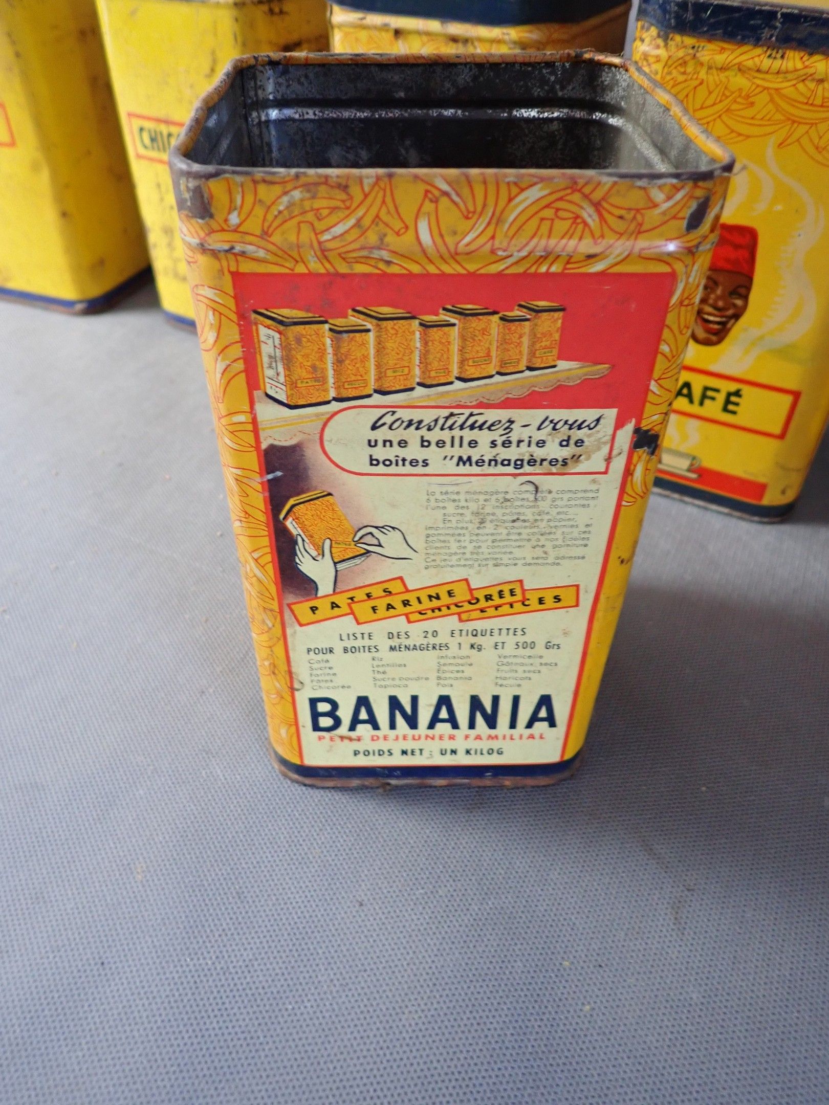 Set of 6 Banania boxes (1 lid missing, oxidation)