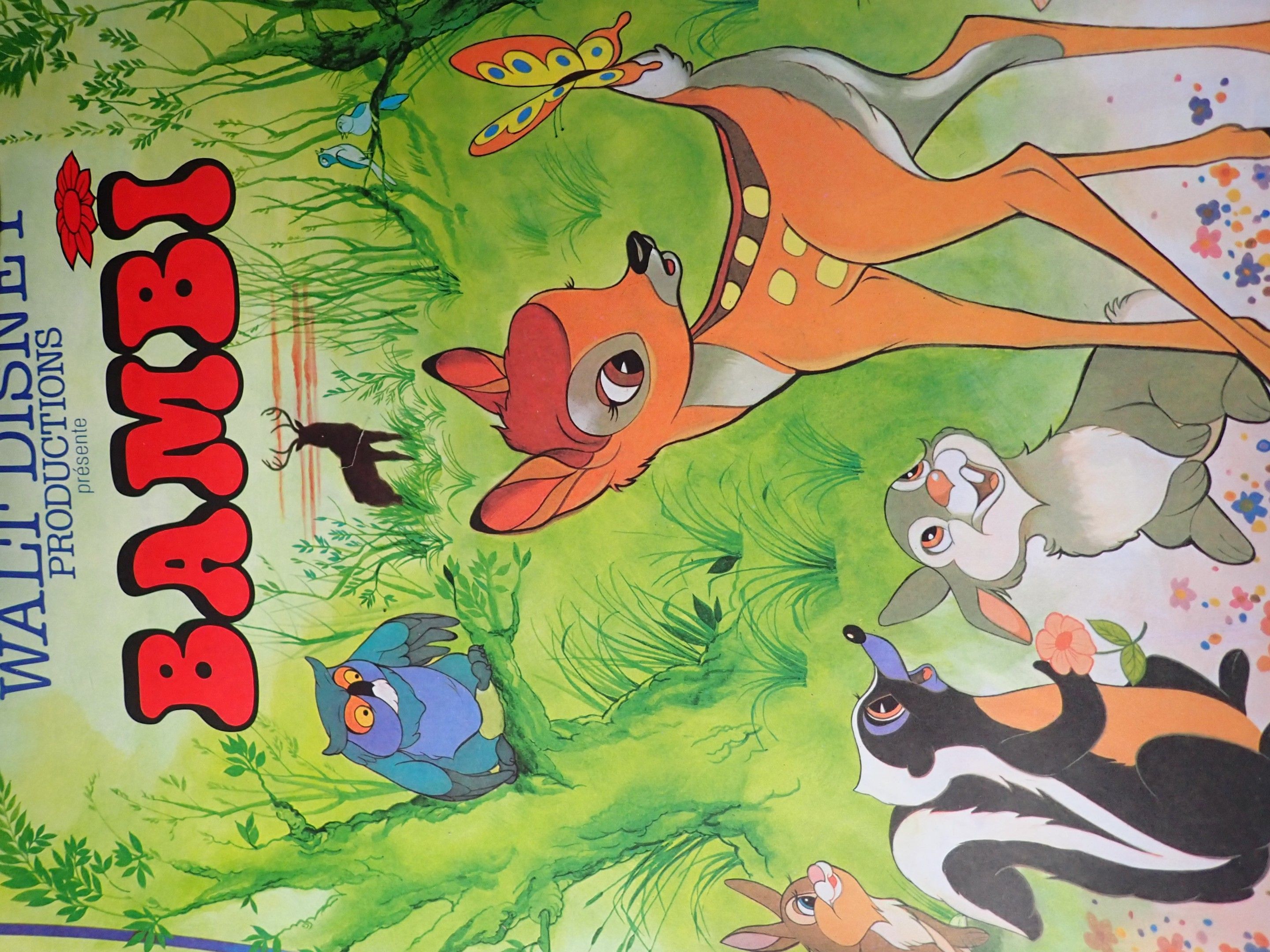 Set of 4 Walt Disney posters from the 70s: The Jungle Book, 53x40cm / Bambi, 53x40cm / Mickey Jubilee, 53x40cm / Bambi, 60x40cm, vintage and perfect condition