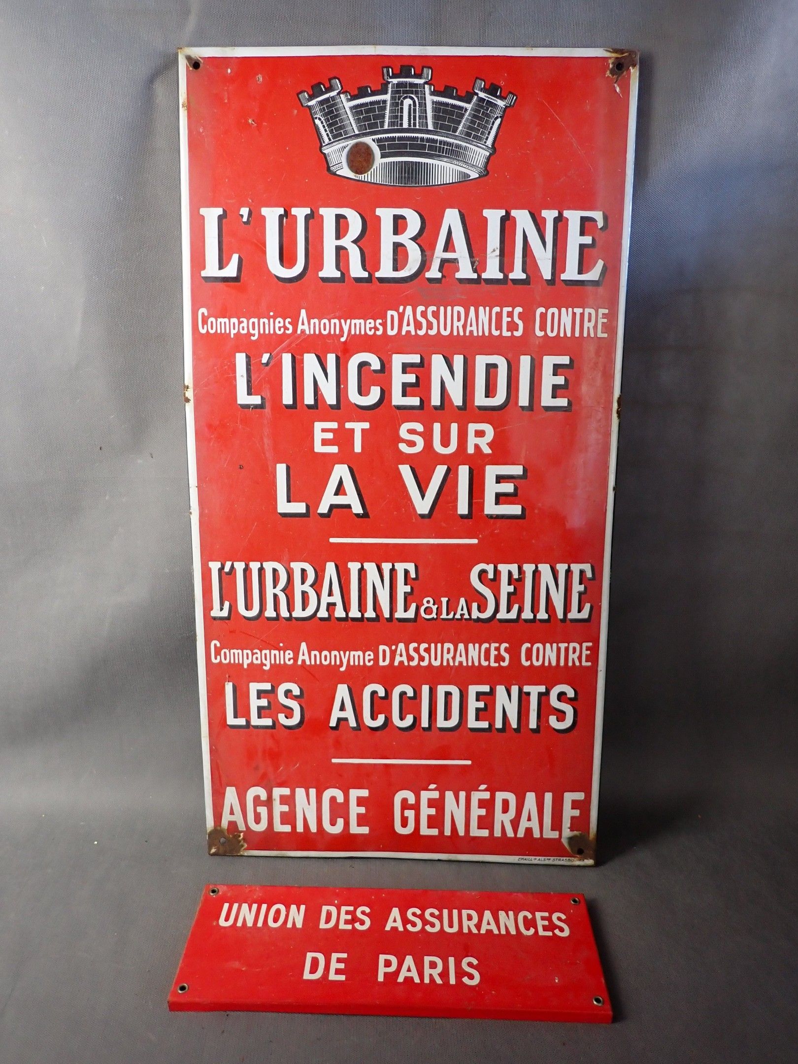 L'Urbaine Enamelled plate, 73 x 38cm, a screen-printed sheet metal plate, 12 x 15cm, is attached.
