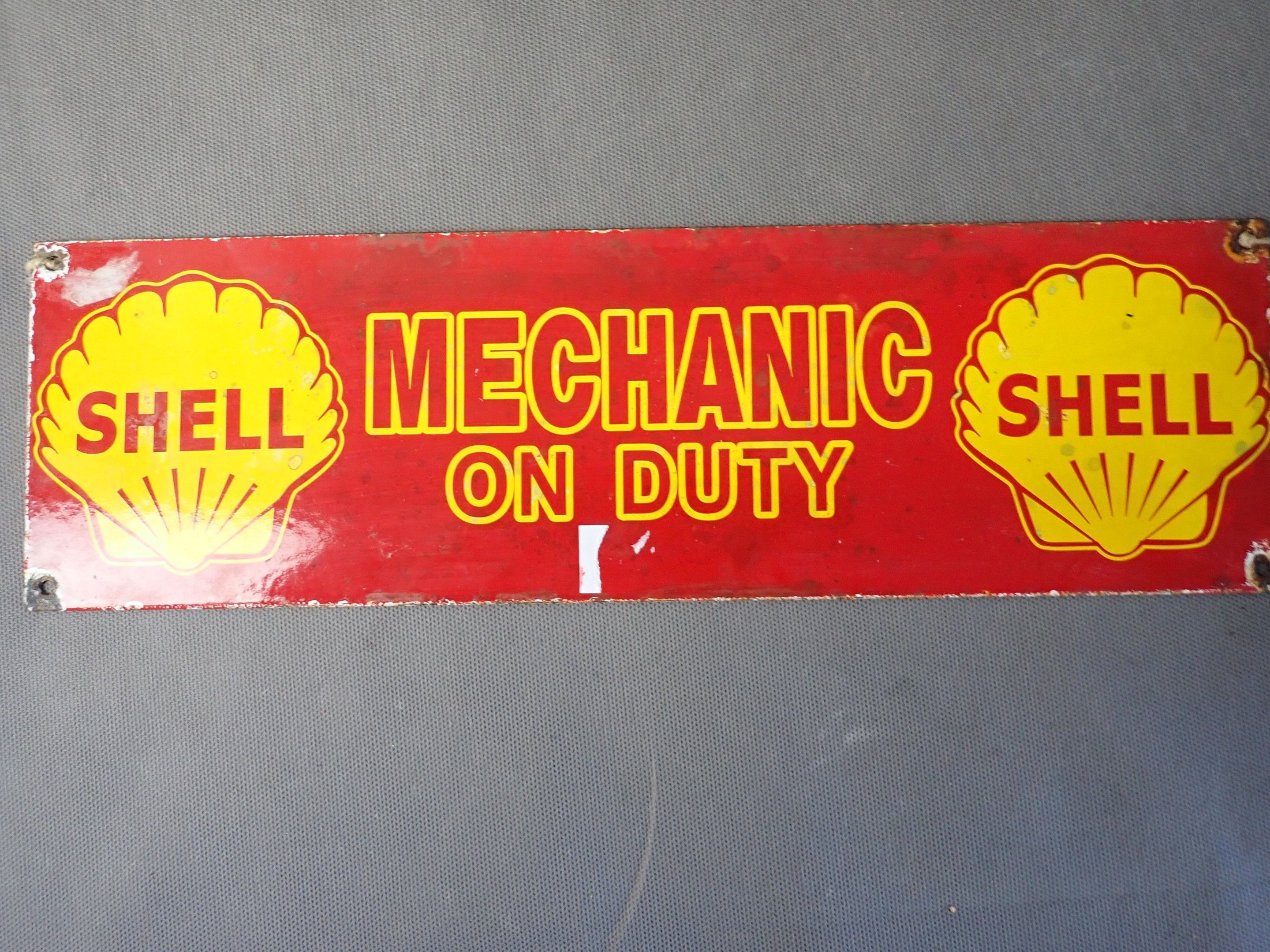 SHELL Enamelled plate, 12 x 40cm (chips in the enamel)