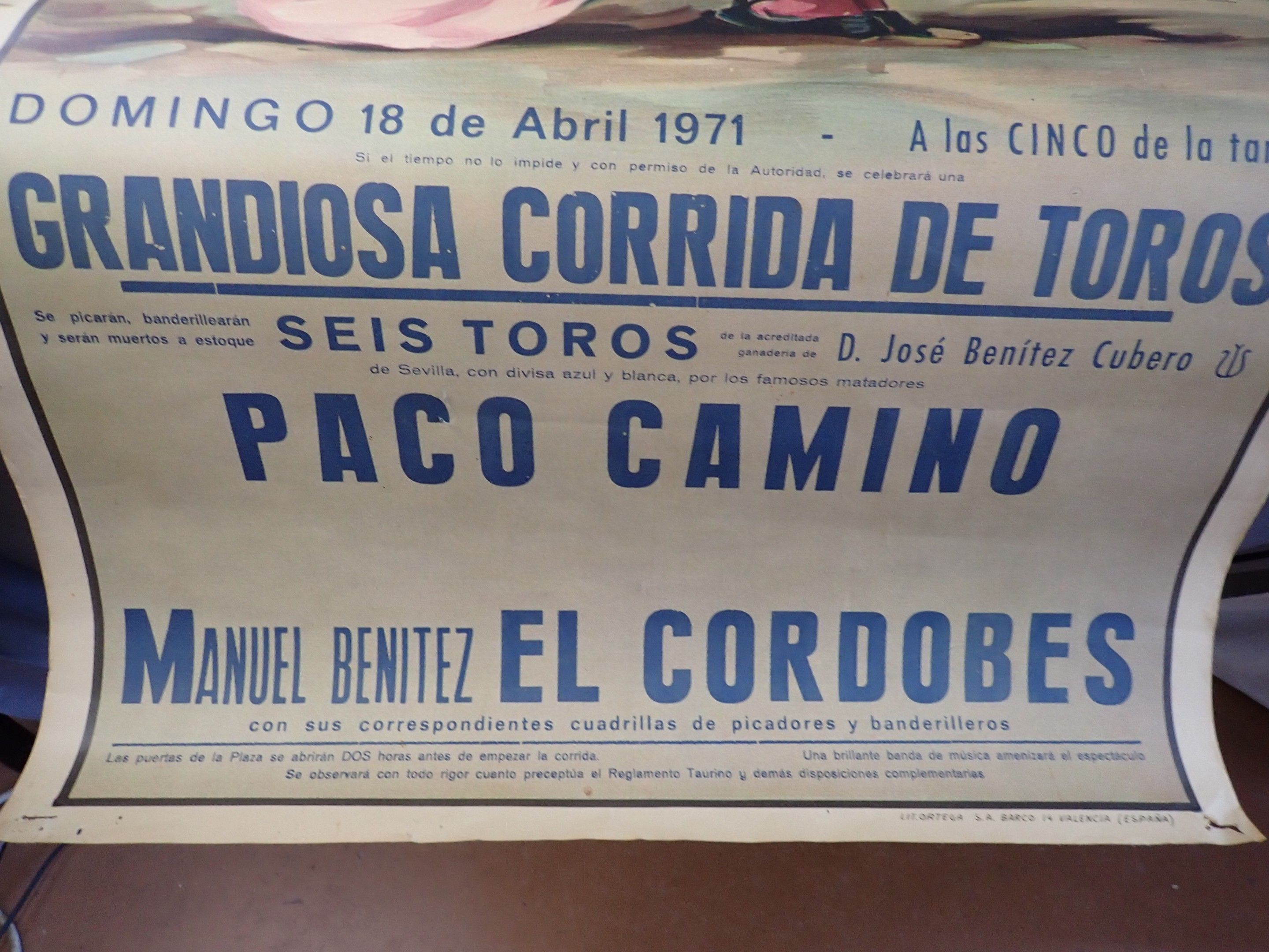 TAUROMACHIE Illustrated poster, 1971, 106 x 54cm (accidents)