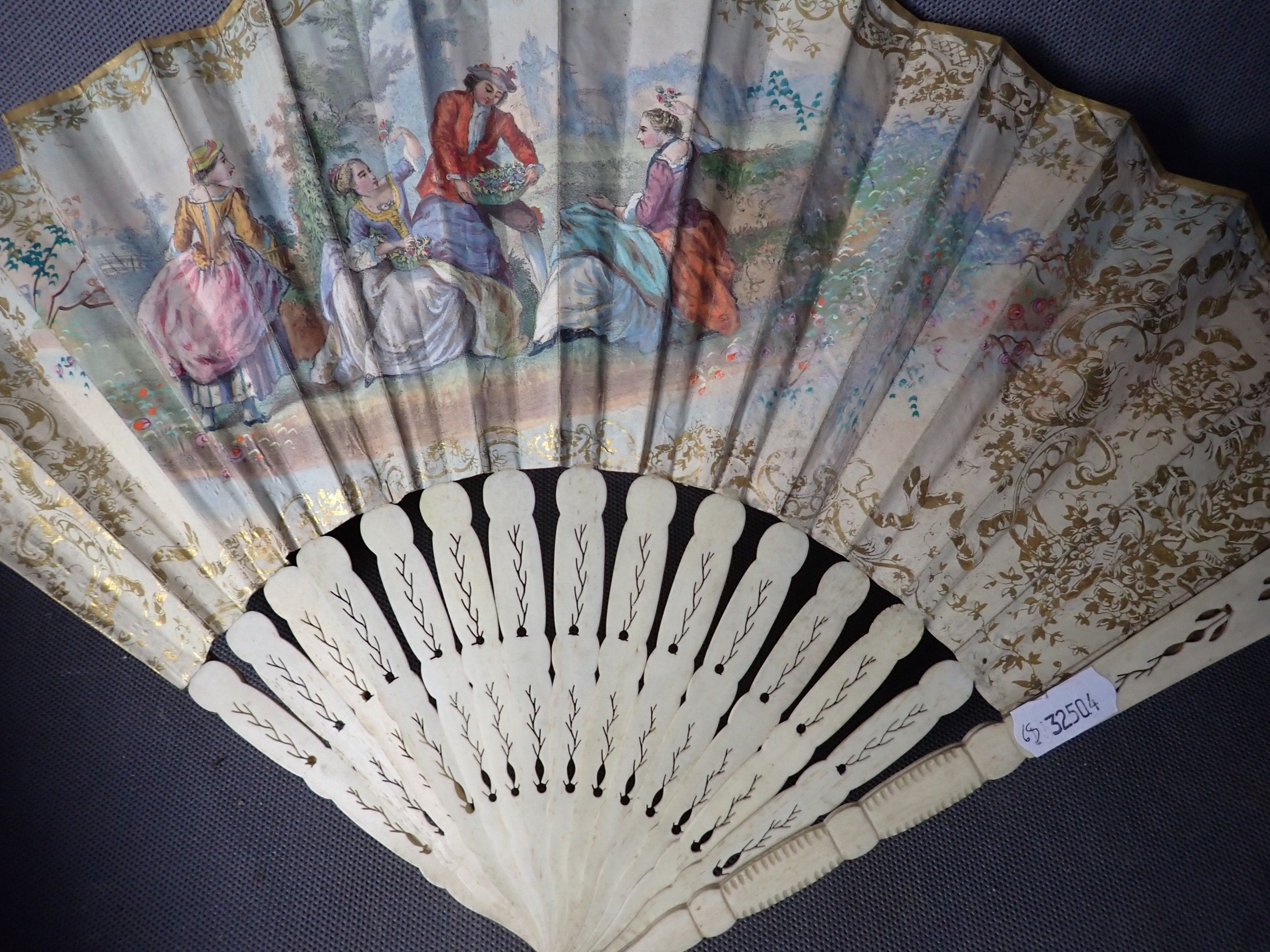 Bone fan, decorated with a galant scene, 26.