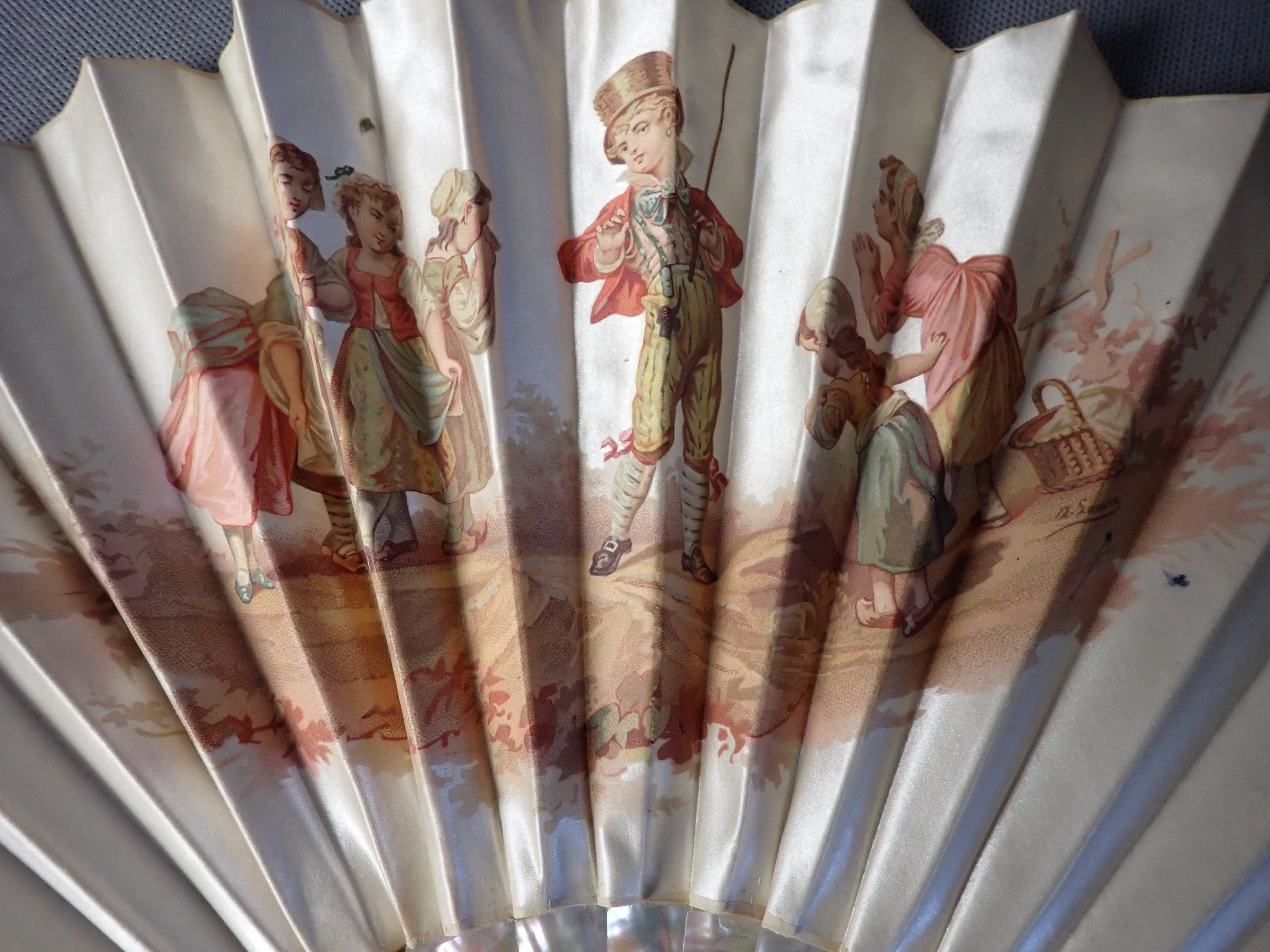Mother-of-pearl fan, decorated with a scene of children, H 2…