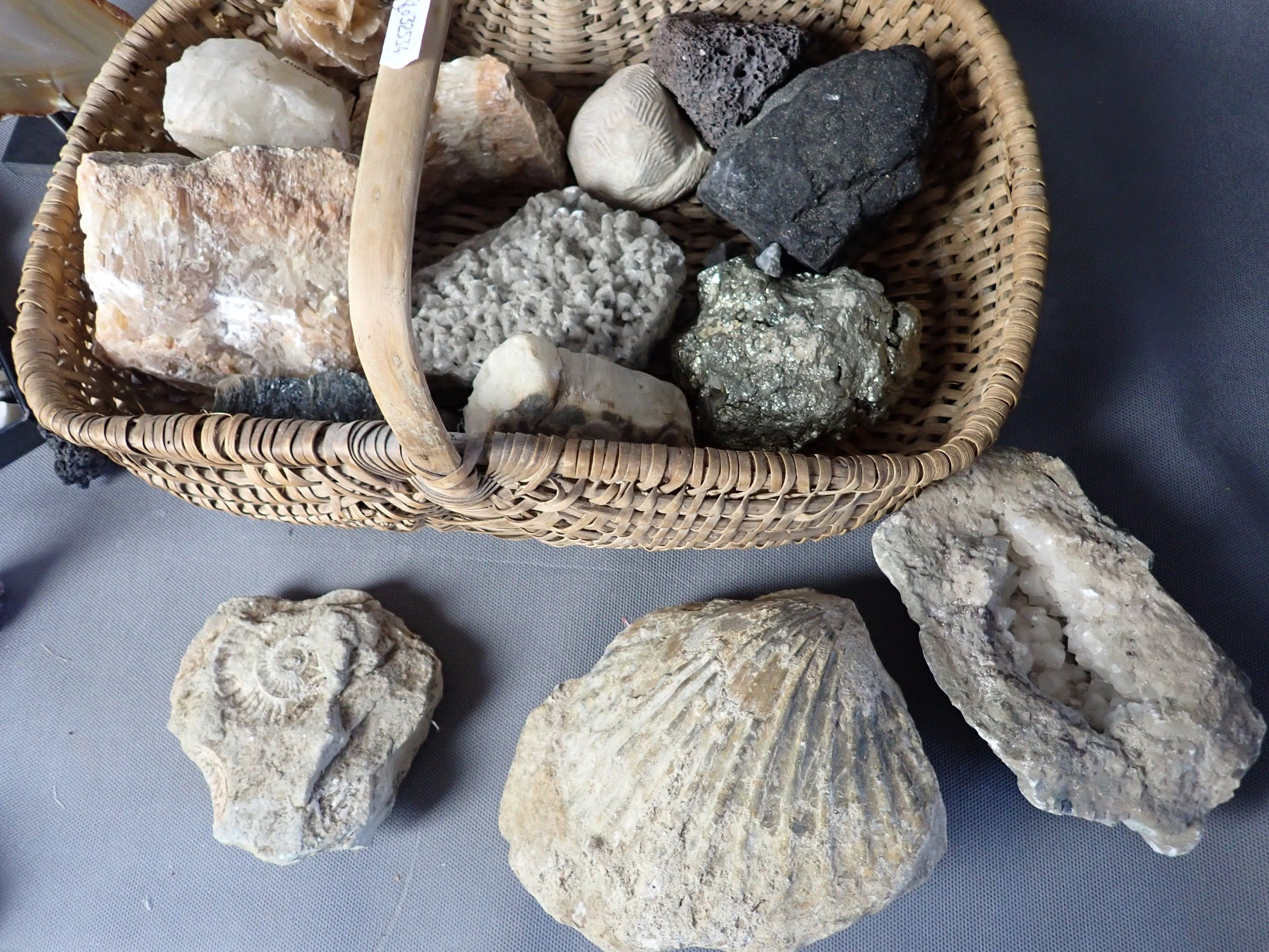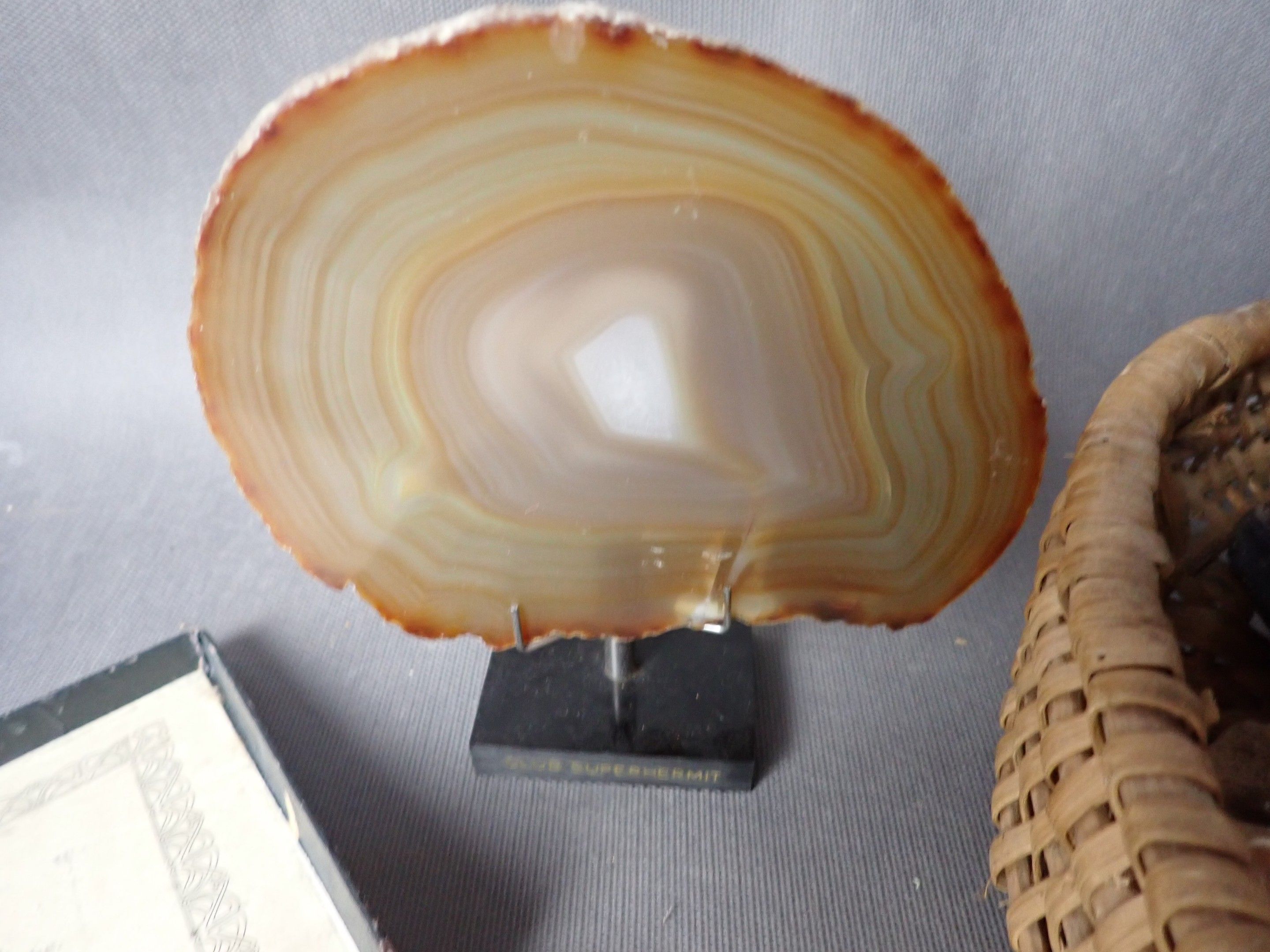 Lot of minerals including a slice of socled agate