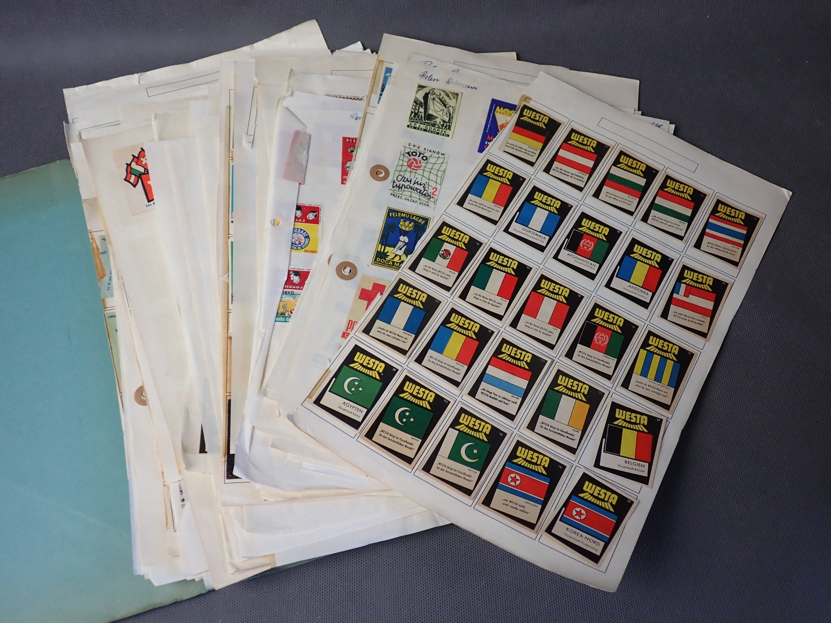Collection of matchbox advertising labels, various themes