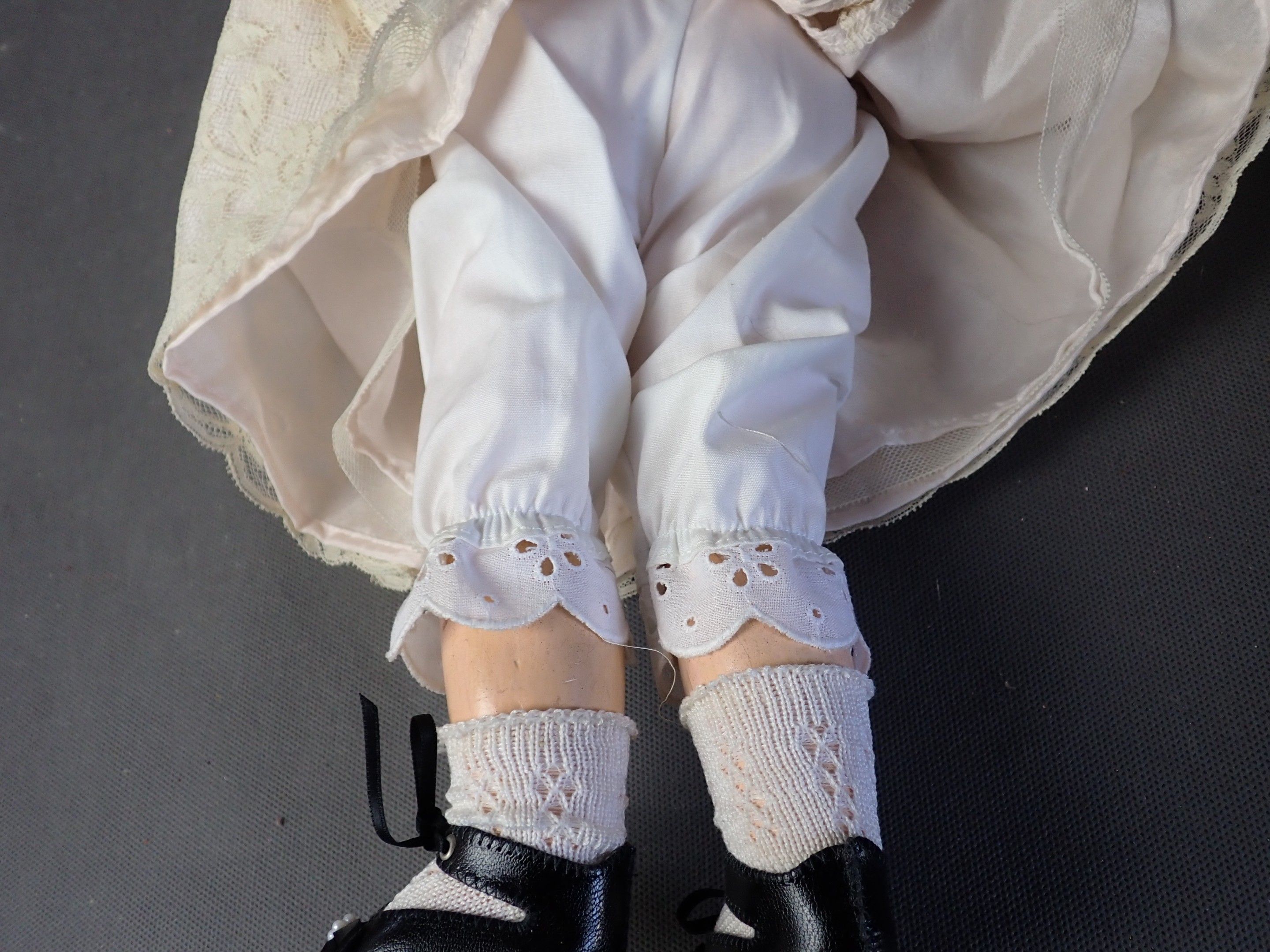 MADE IN GERMANY Doll with porcelain head, open mouth, movable eyes, H 47 cm