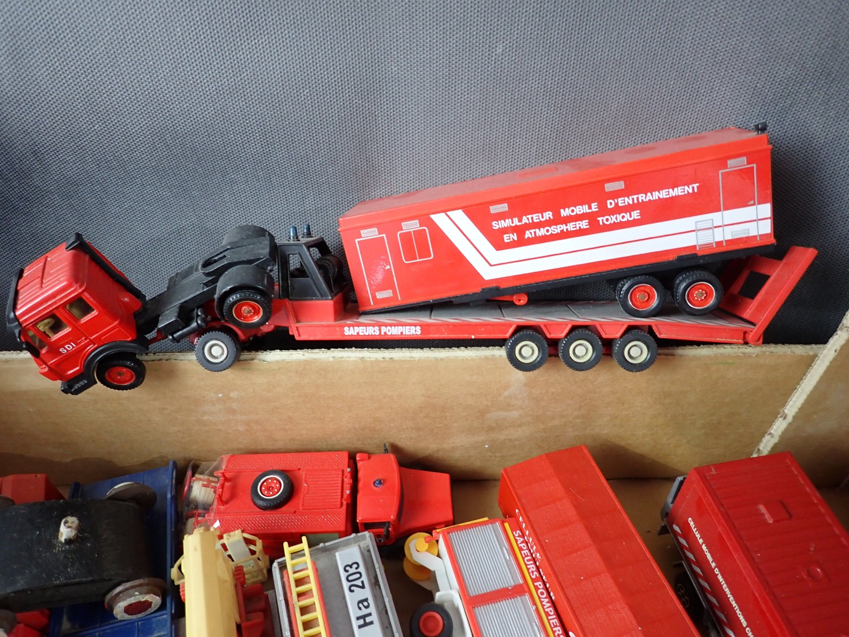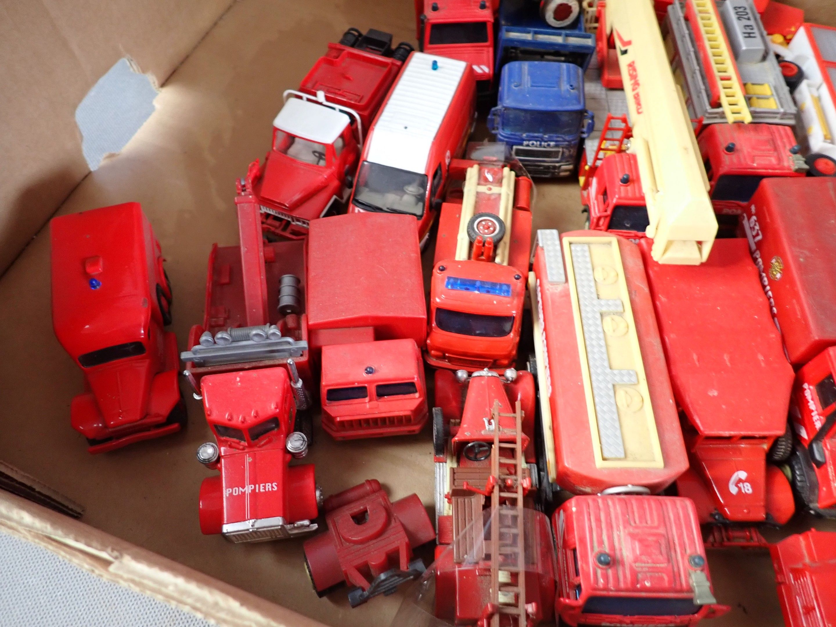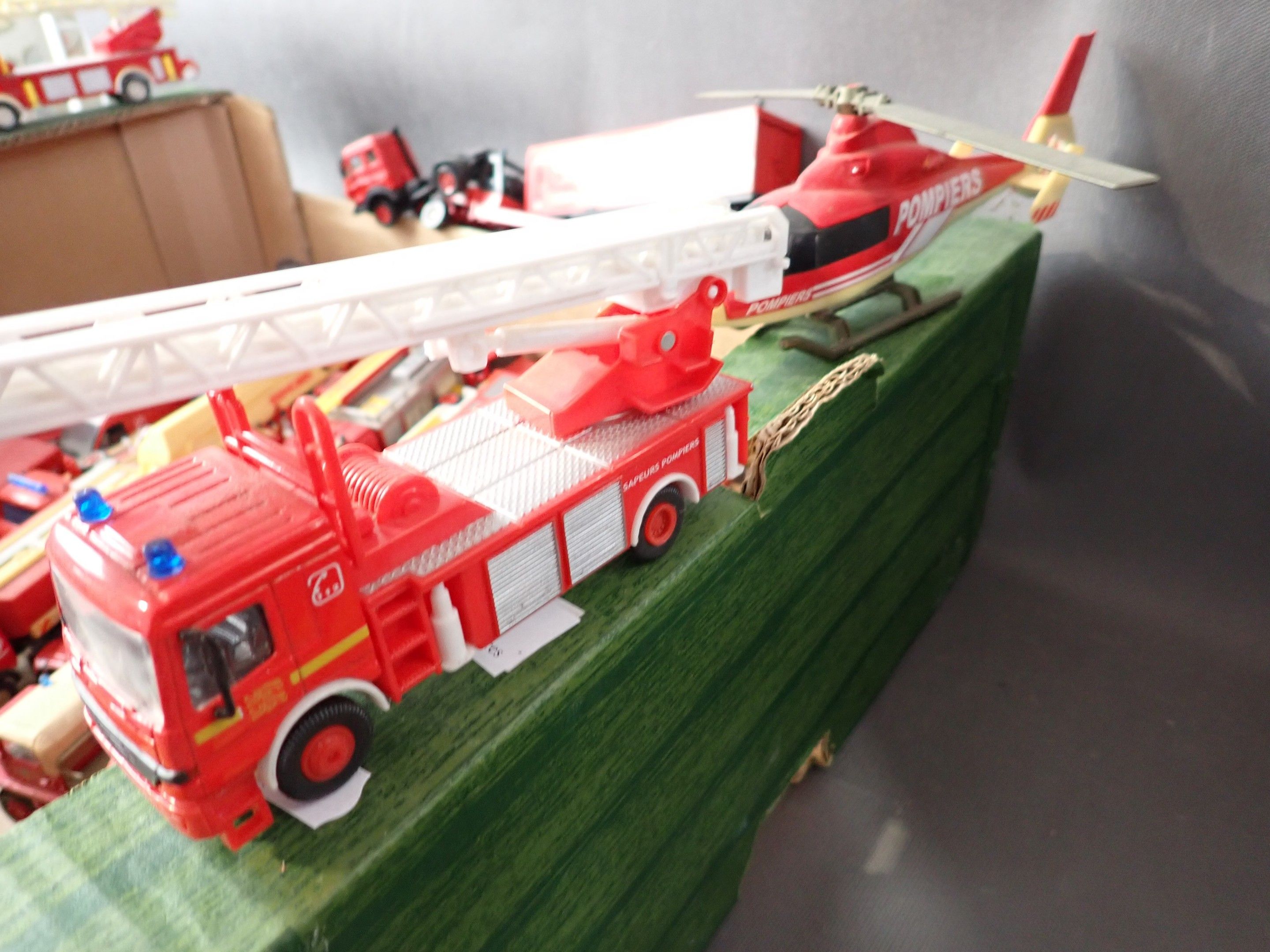 Lot of fire trucks and vans, various makes including Majorette and Solido (lot sold as is)