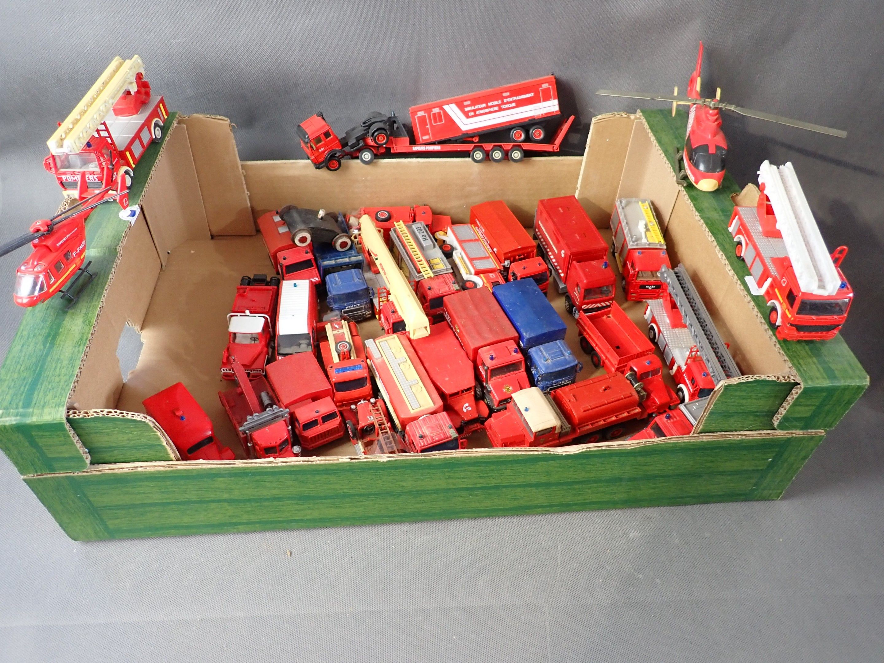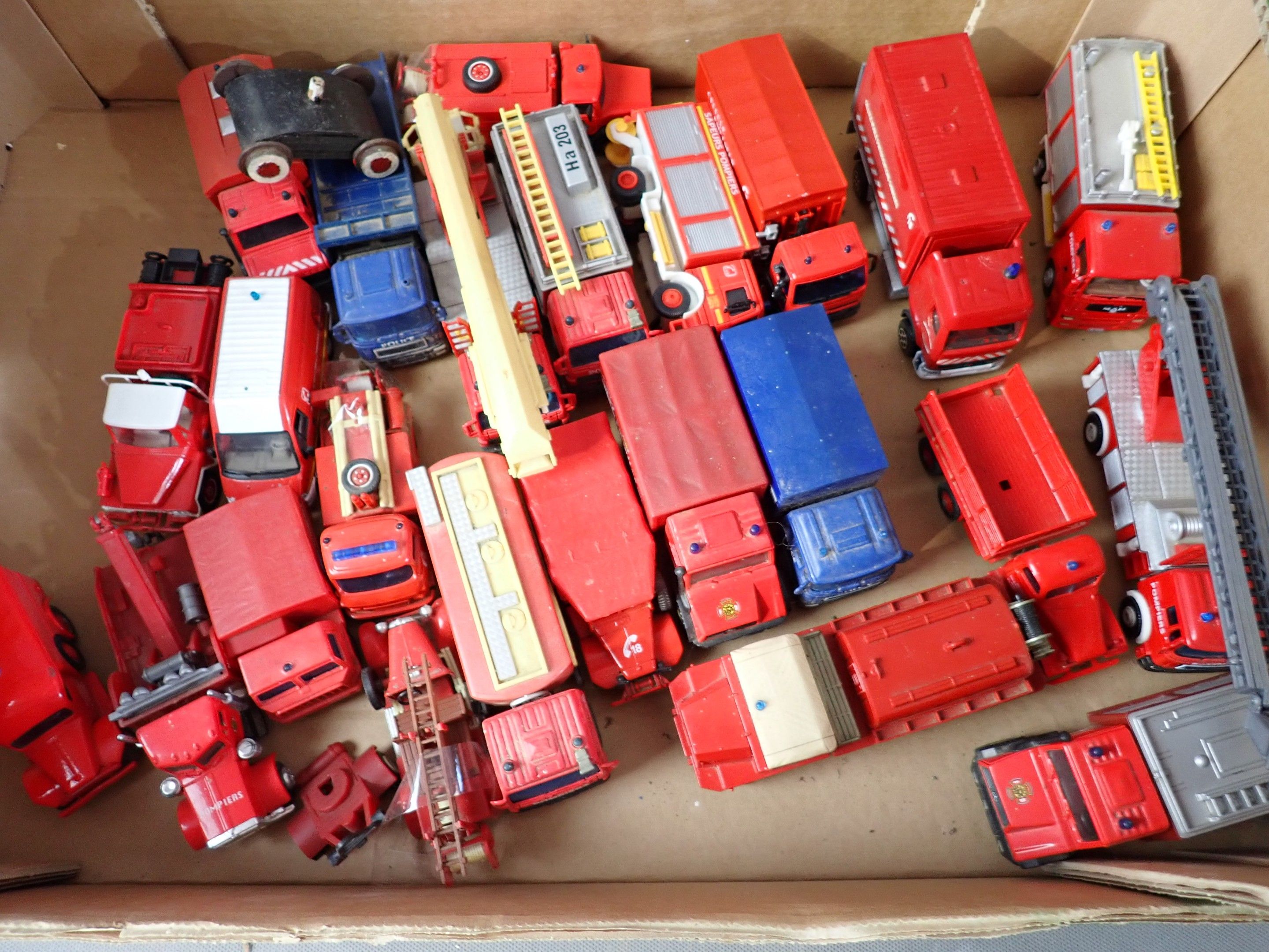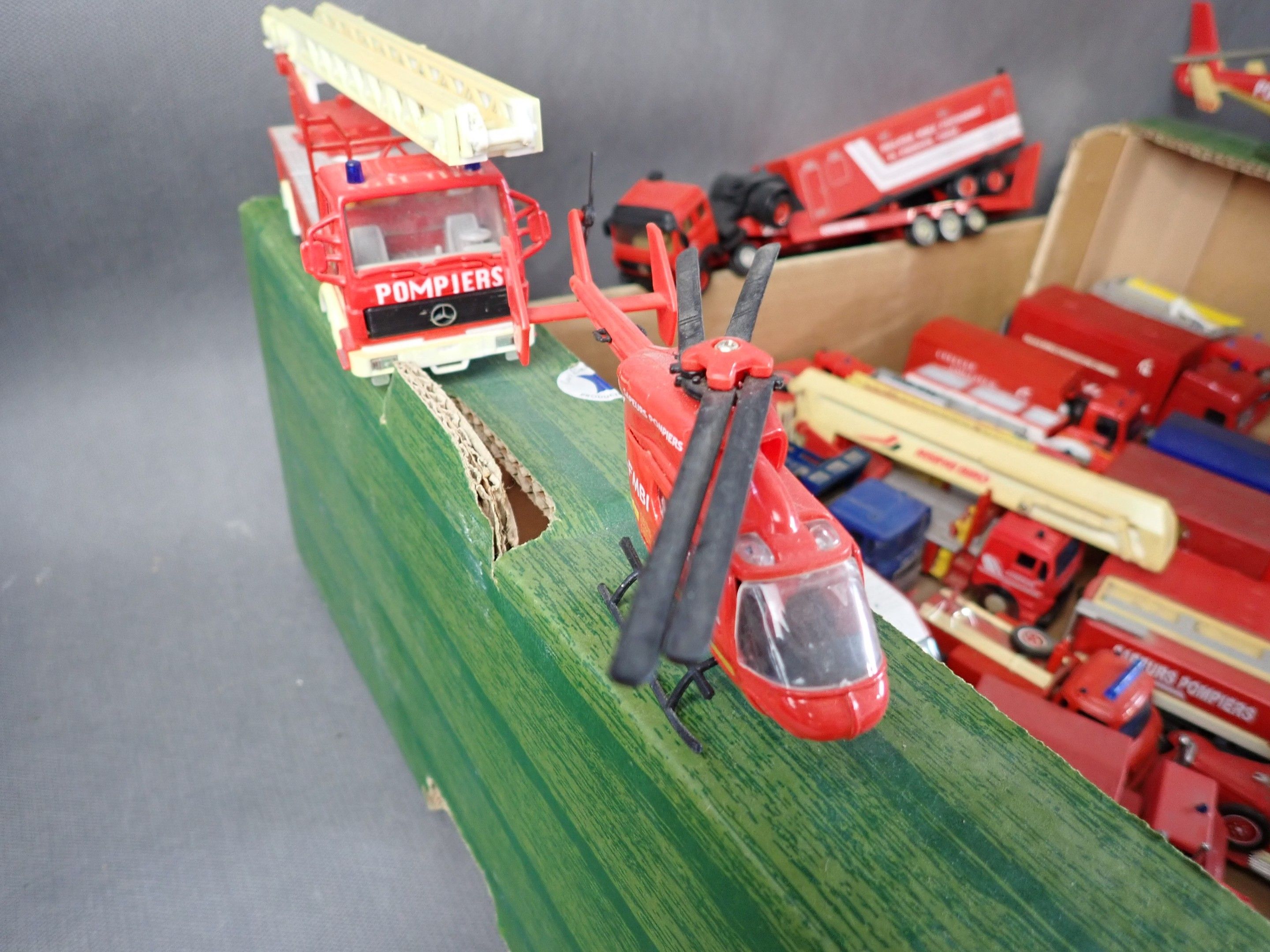 Lot of fire trucks and vans, various makes including Majorette and Solido (lot sold as is)
