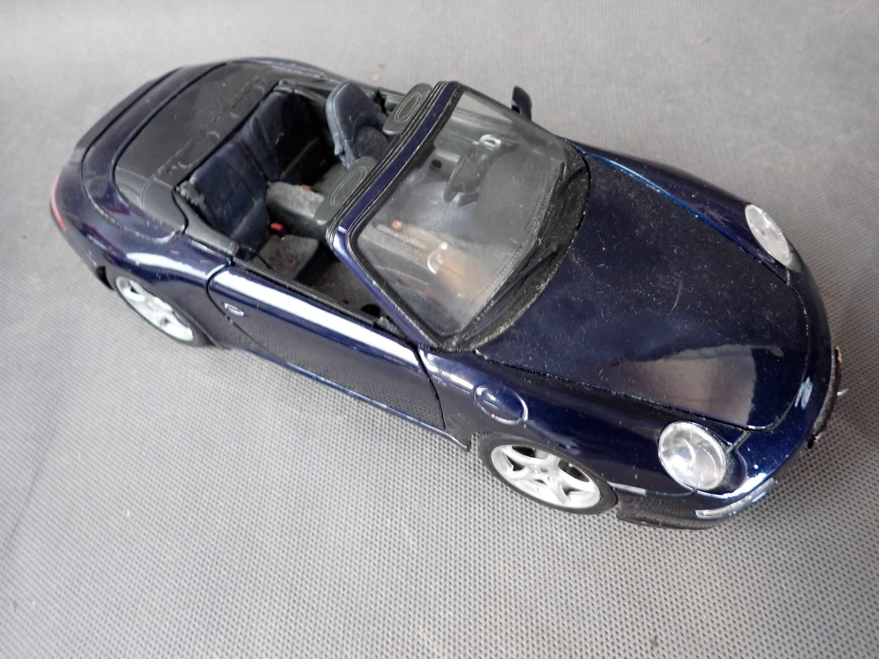 Set of 3 Porsche miniature vehicles, scale 1/18, (missing and damaged)