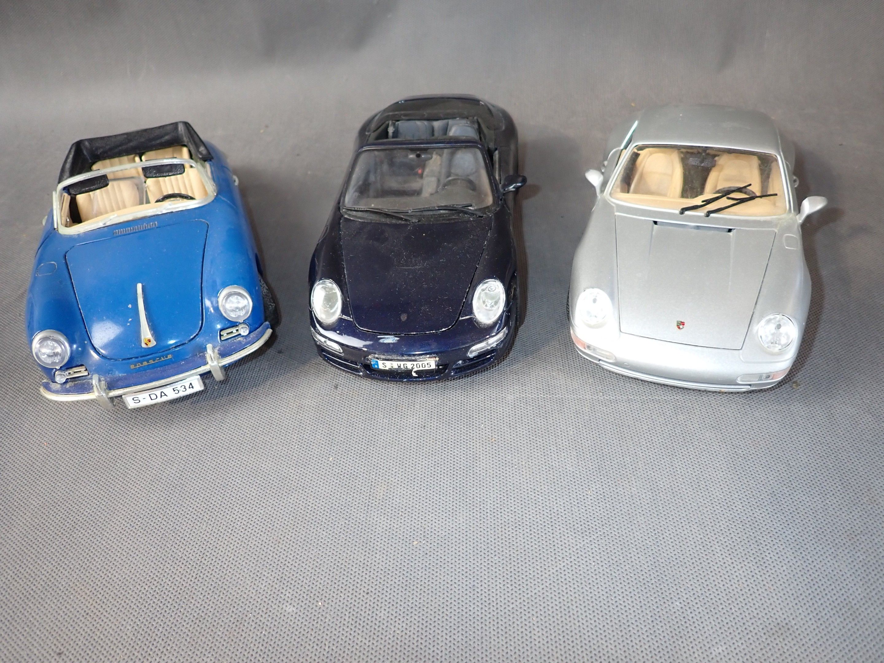 Set of 3 Porsche miniature vehicles, scale 1/18, (missing an…
