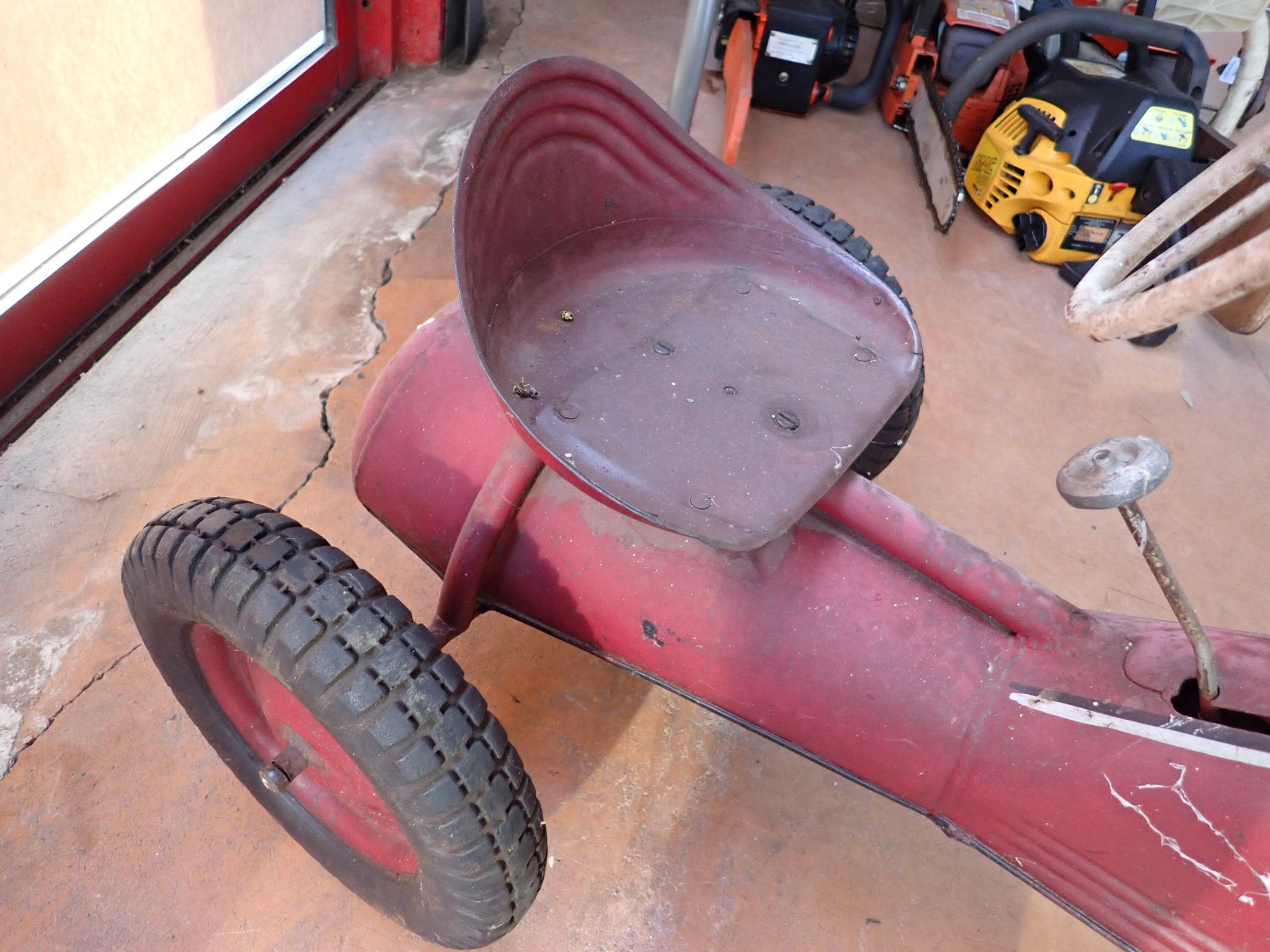 Pedal tractor in painted sheet metal, 90 cm long (oxidation …