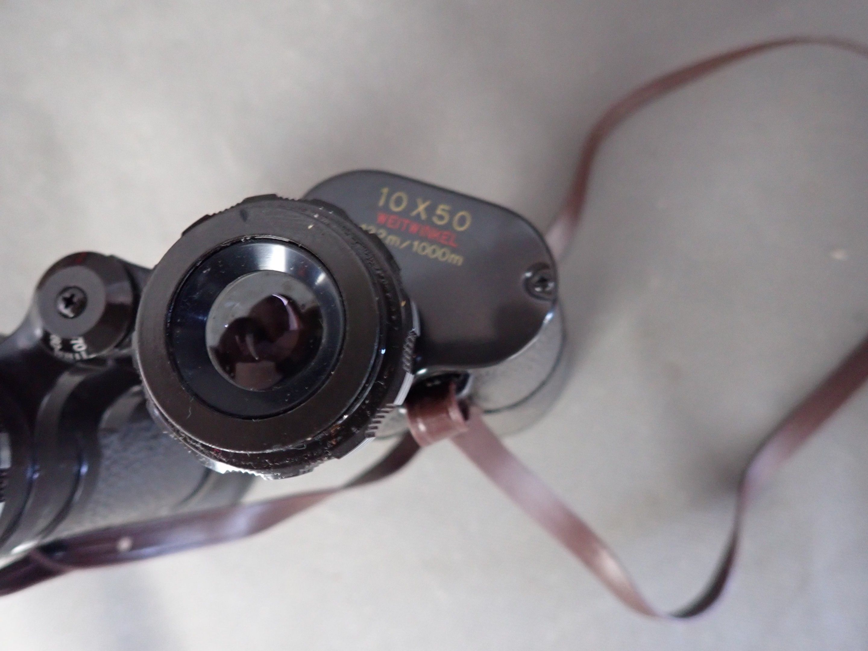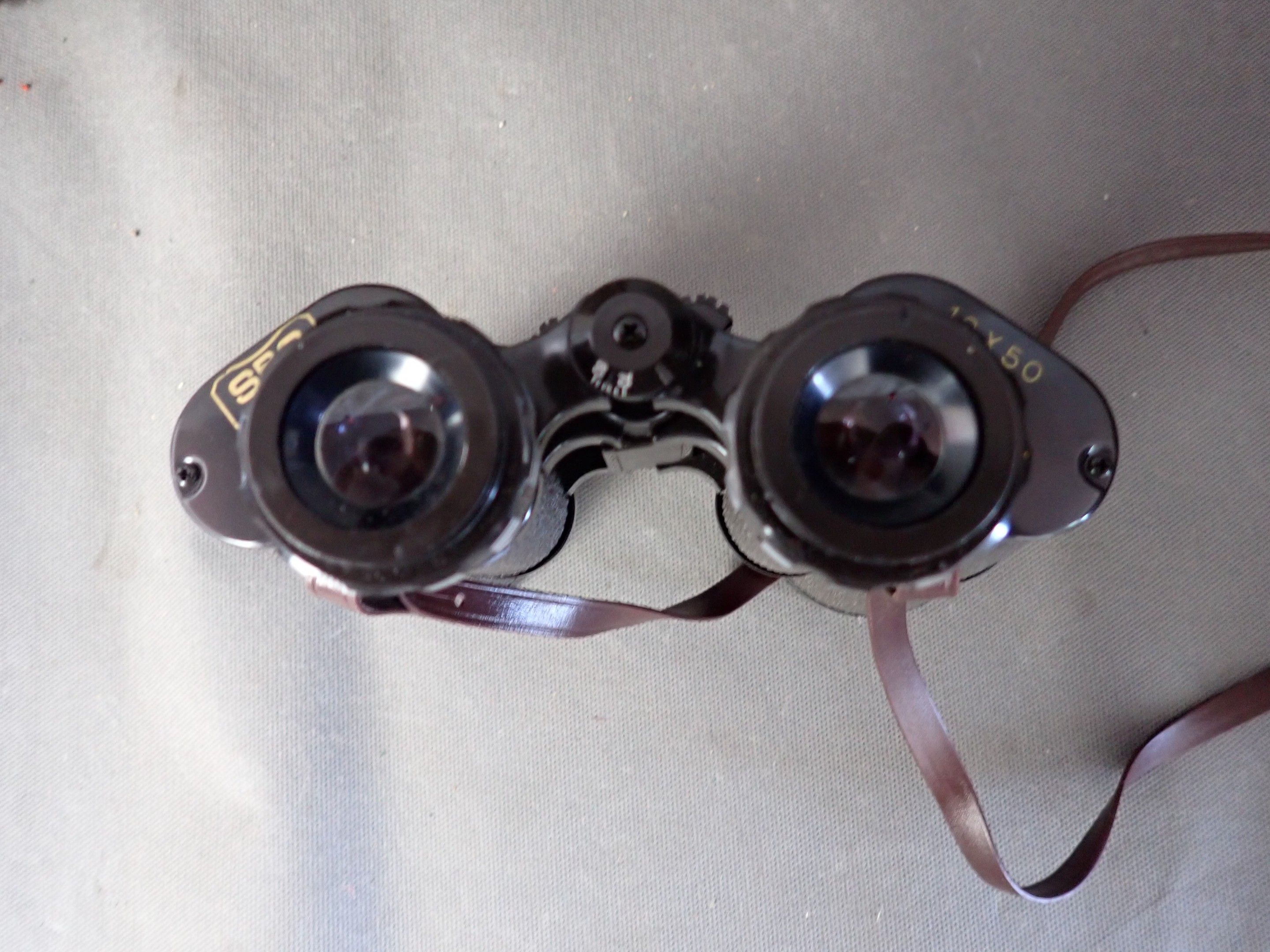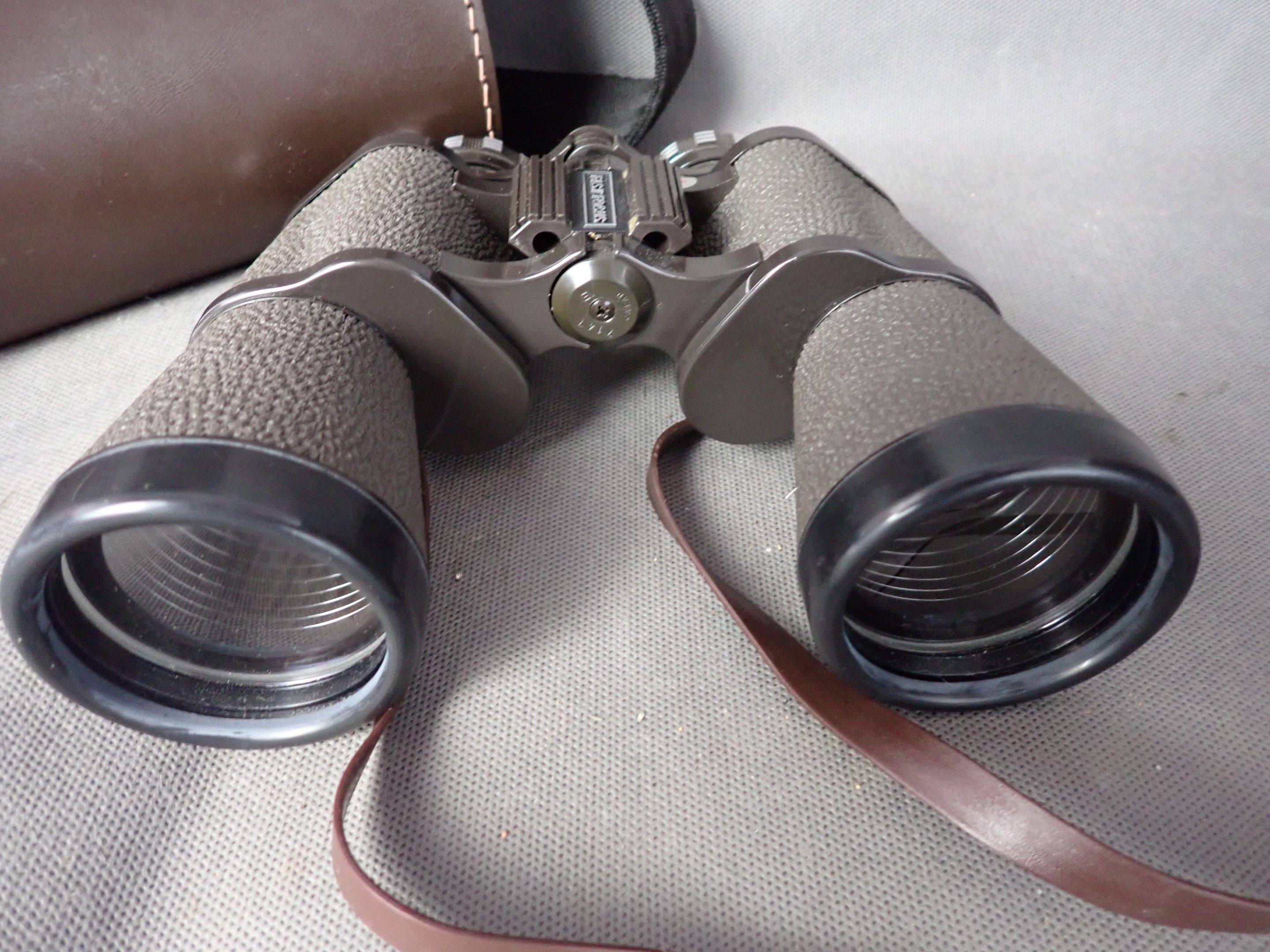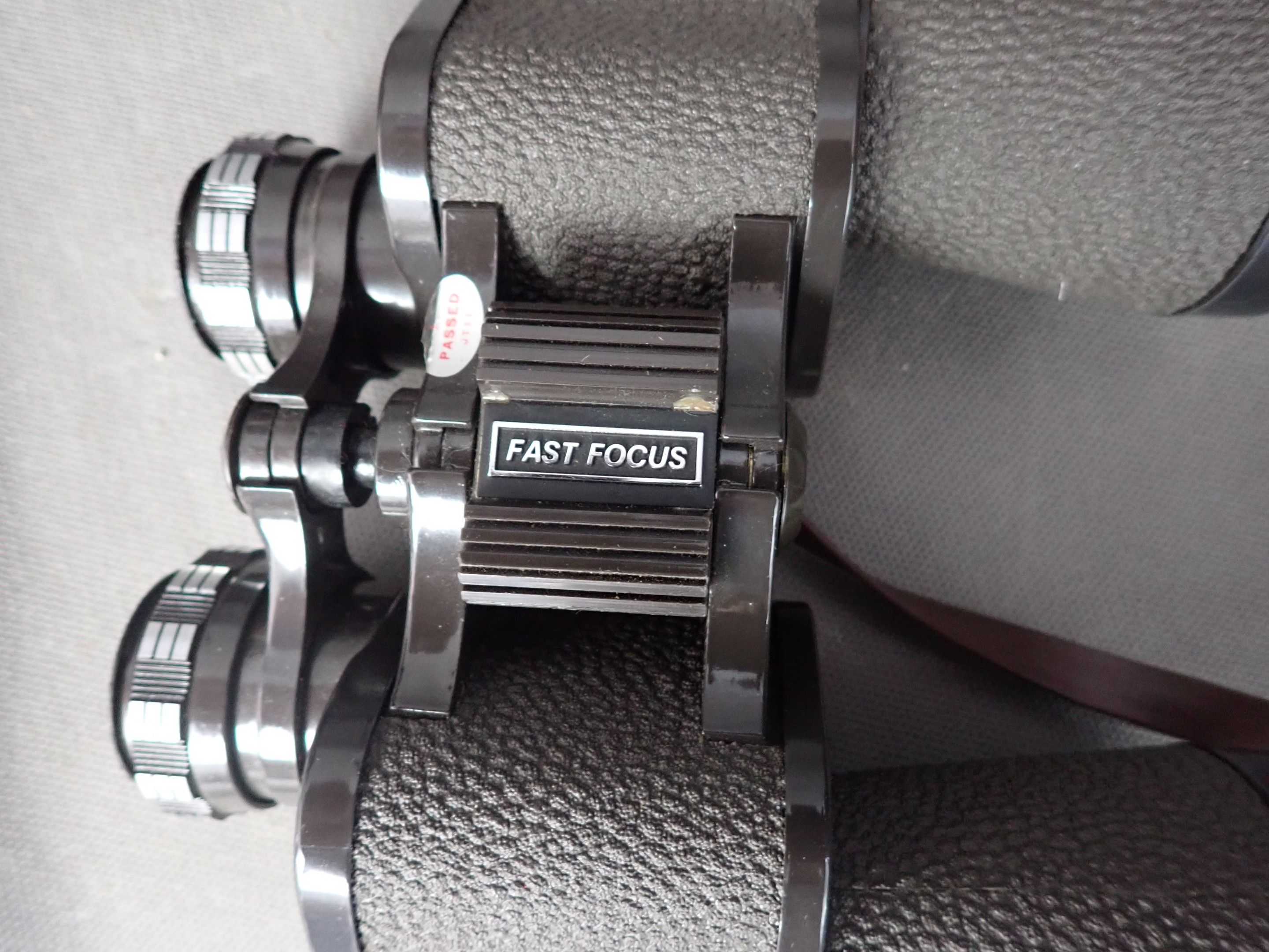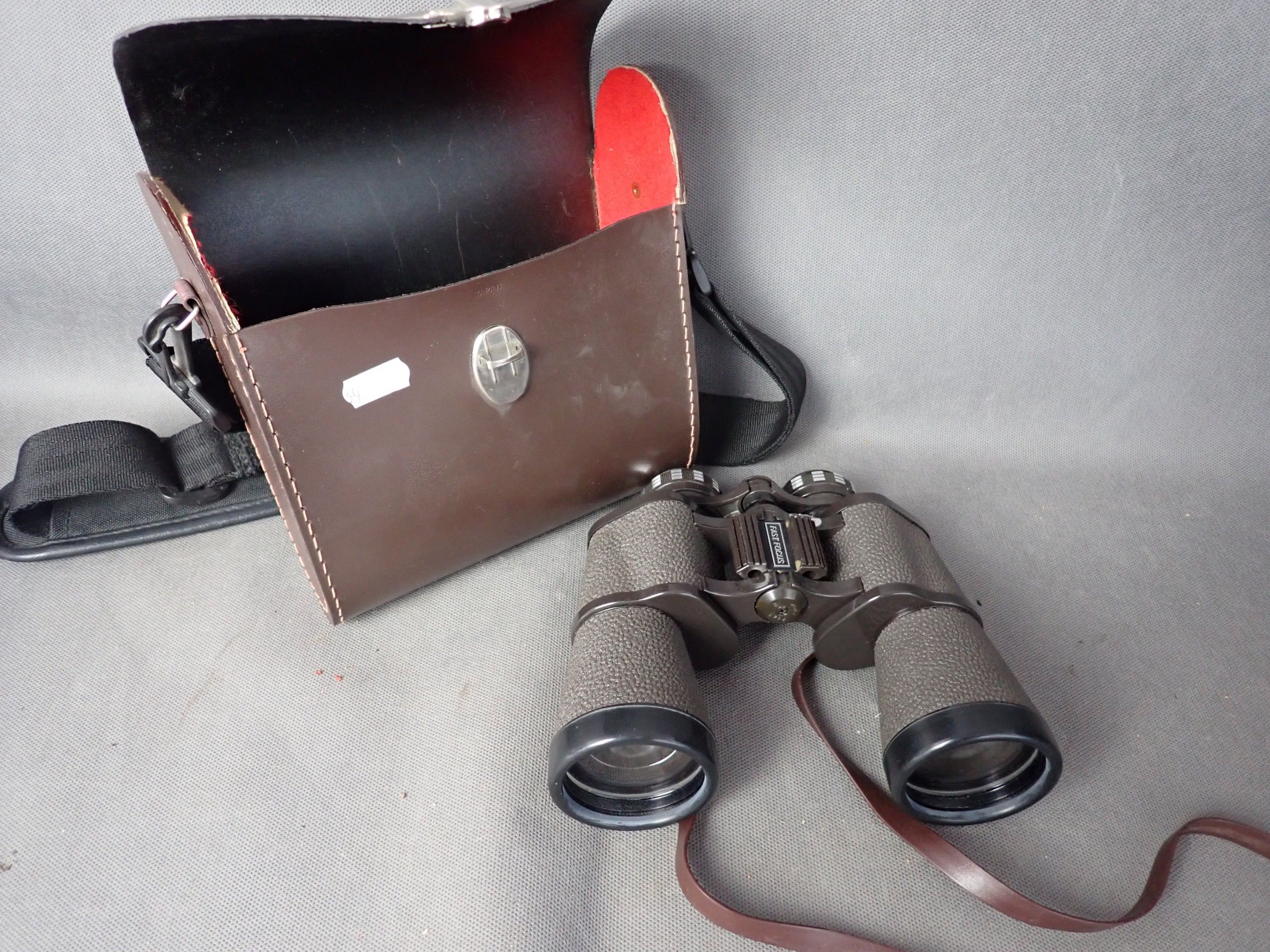 A pair of fast focus 10x50 binoculars in their box