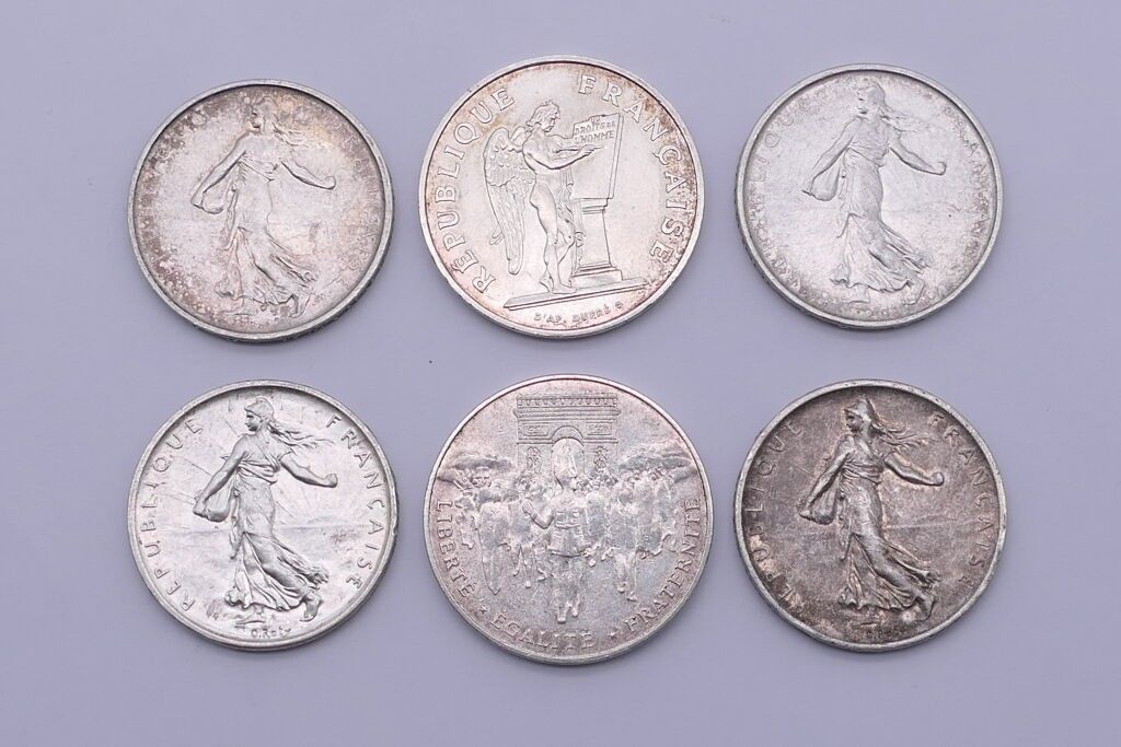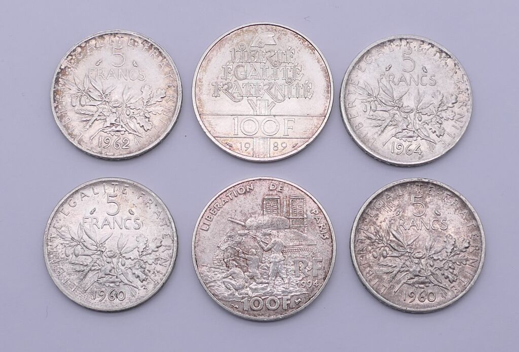 Lot of silver coins. Weight : 77 g.