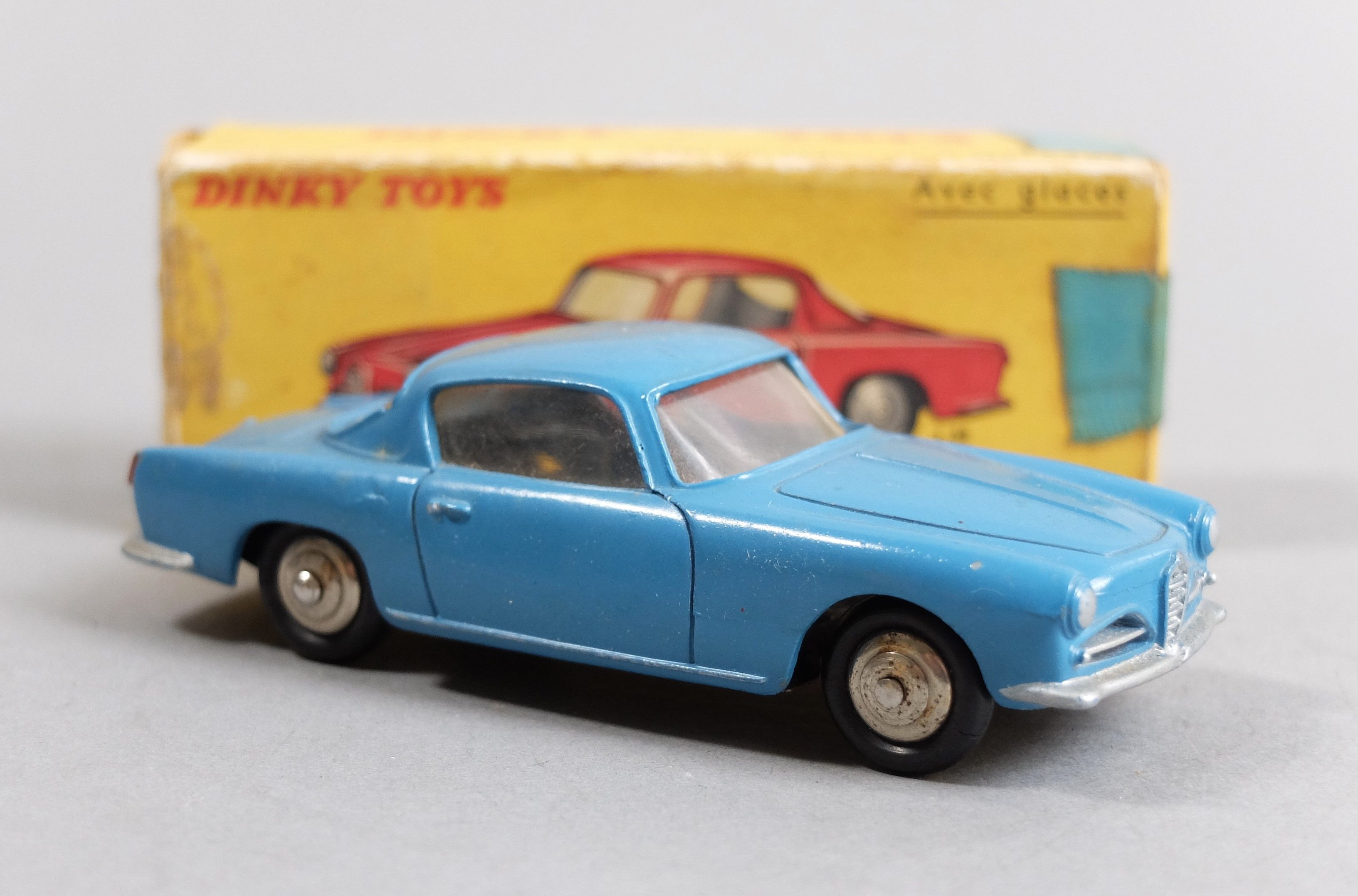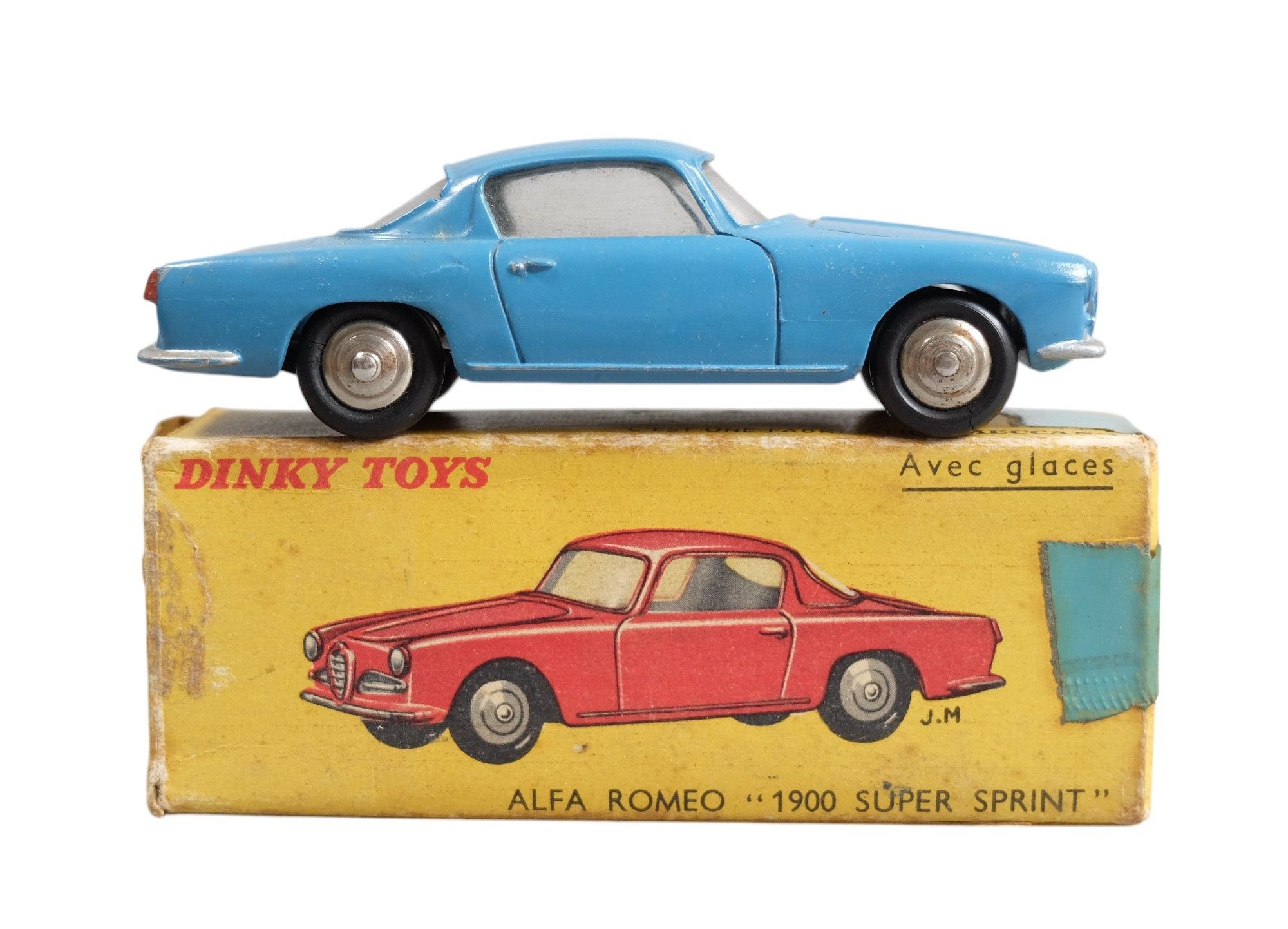 DINKY TOYS FRANCE - 1/43 - 24J - ALFA ROMEO 1900 SPRINT, turquoise blue, with windows, convex rims, BOX (chatertone adhesive on each side).