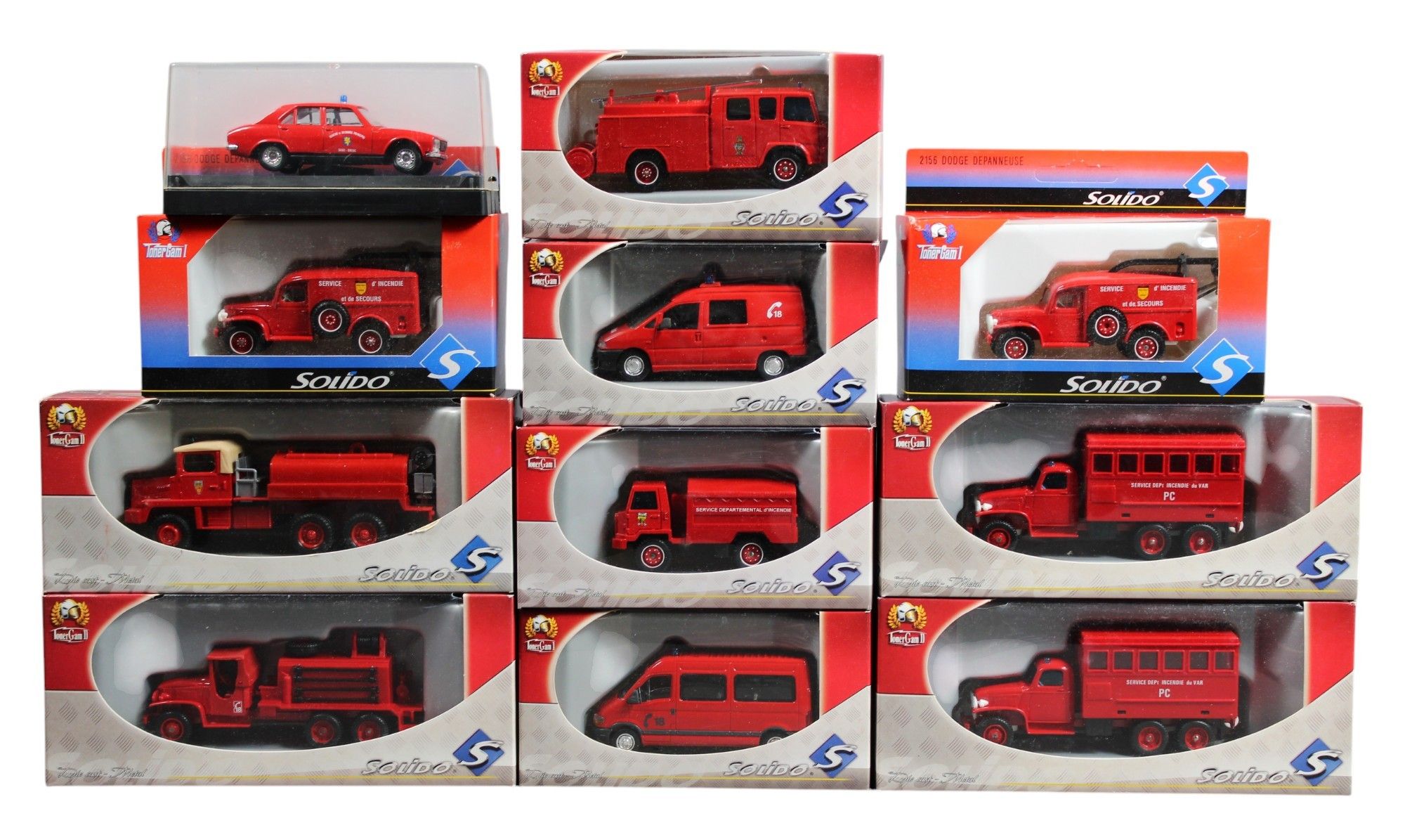 SOLIDO - 1/43 - Set of 10 FIRE TRUCKS, TBE.