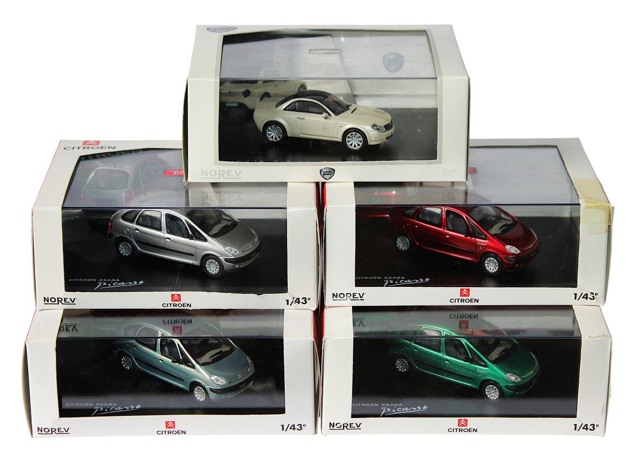 NOREV - 1/43 - Set including 4 CITROEN PICASSO CARS, different body colours, crystal BOXES and cardboard BOXES forming "Coffrets" (some tears on boxes).