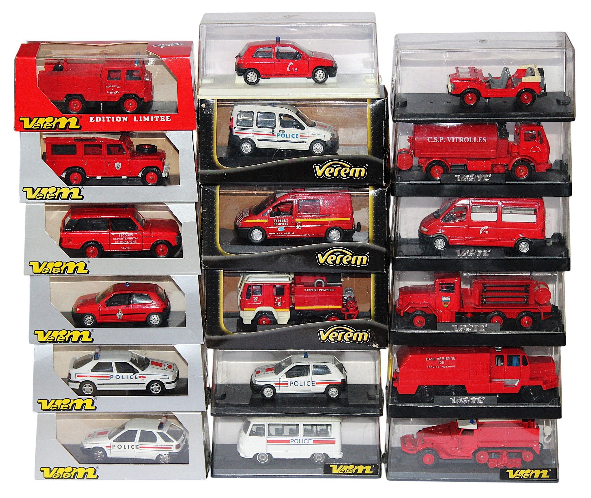 VEREM - 1/43 - Set including 18 FIRE AND POLICE VEHICLES, ma…