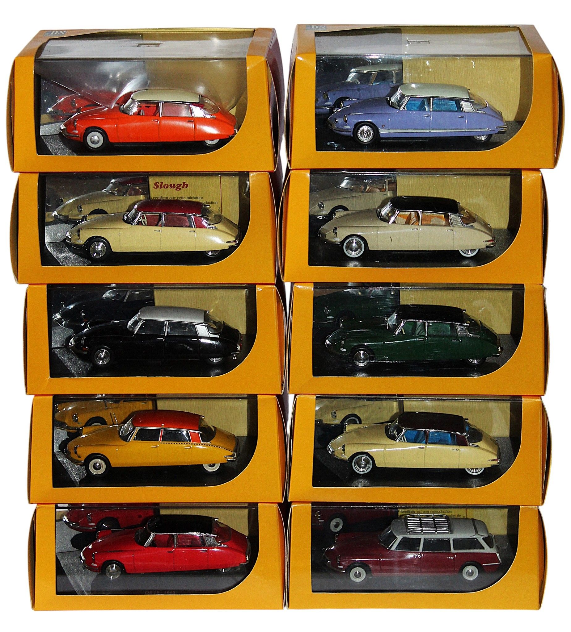 ATLAS - 1/43 - Set including 10 DS CARS, ID19 models, crystal BOXES and cardboard OVERBOOKS.