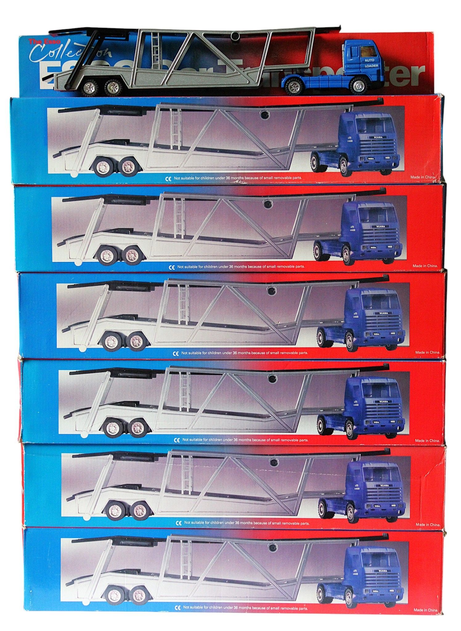 ESSO COLLECTION - 1/43 - Set of 6 SCANIA car transport TRUCKS, BOXES (wear and small tears).