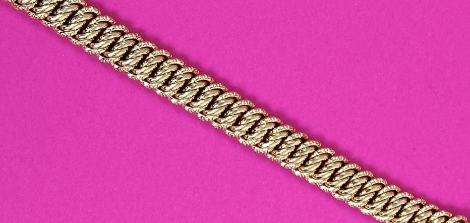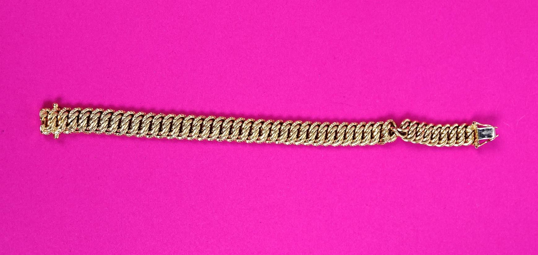 18K (750 thousandths) yellow gold bracelet with criss-cross links and safety clasp