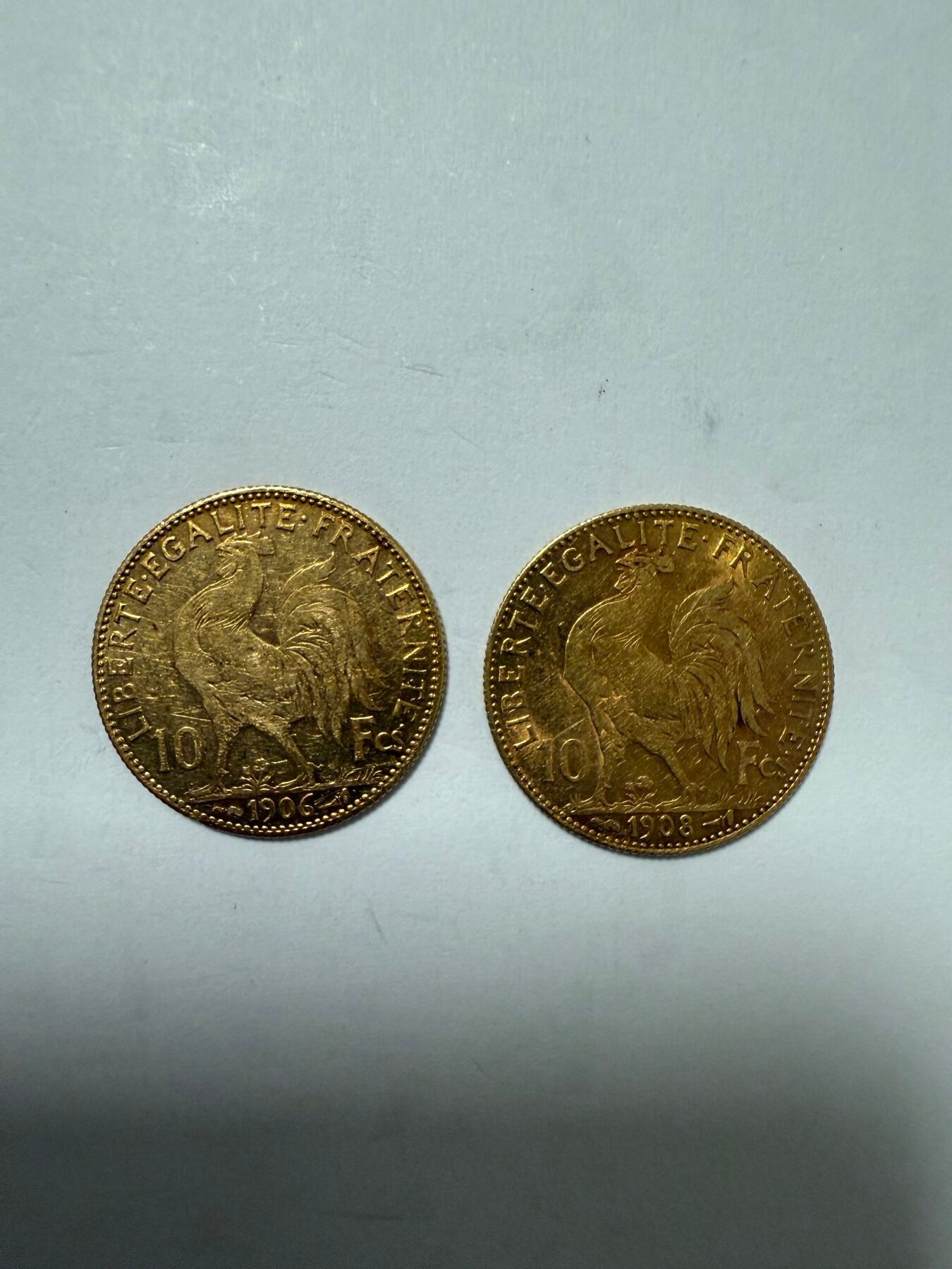Third Republic (1871-1940). 2 coins of 10 Francs - 1906, 1908, 6,45 g.