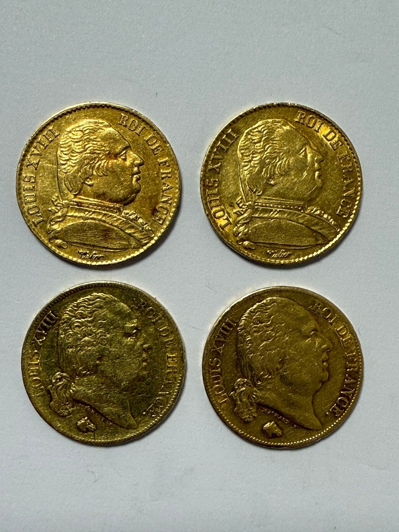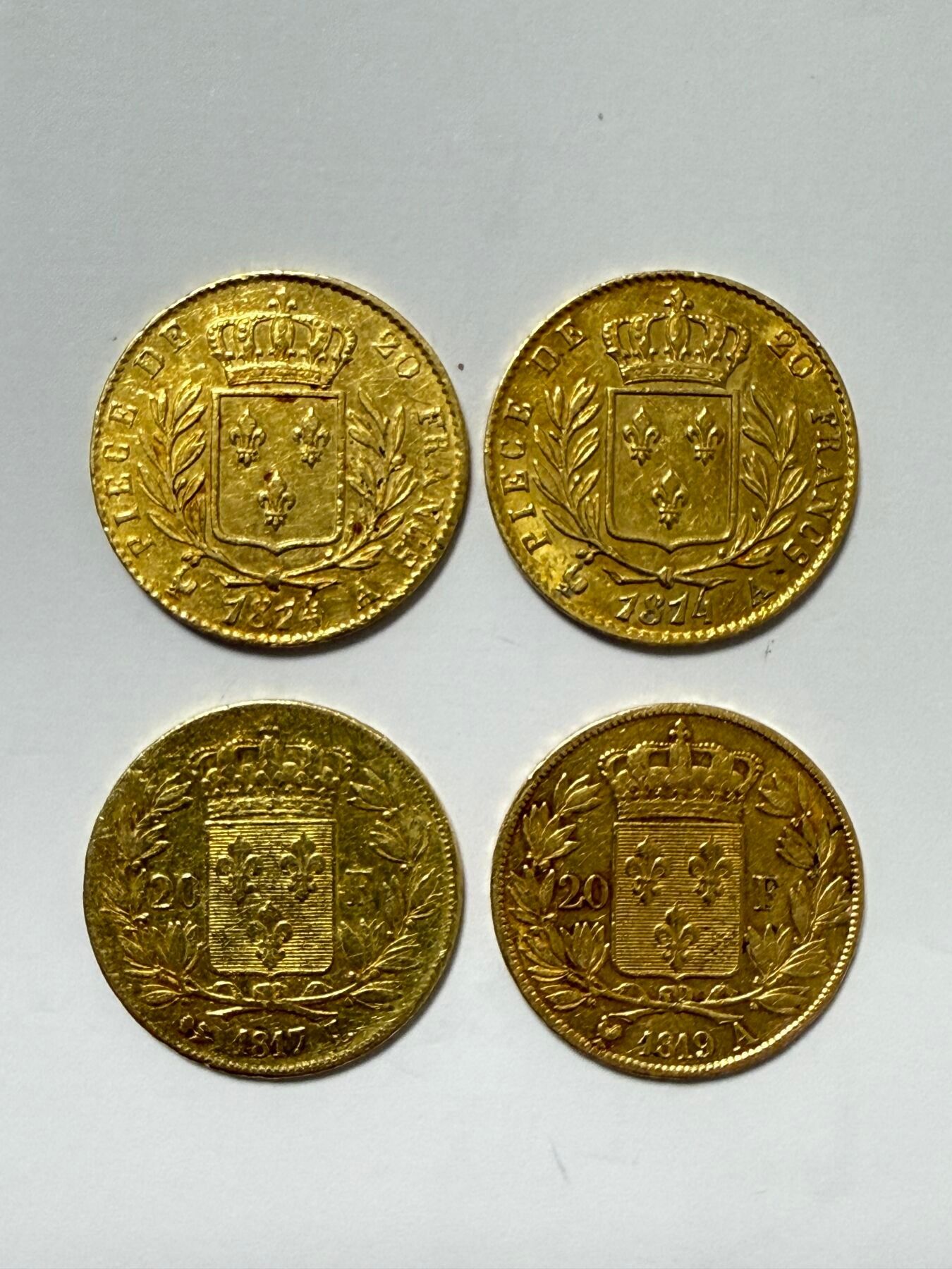 Louis XVIII (1815-1824). 4 coins of 20 Francs 2 of 1814 A Pa…