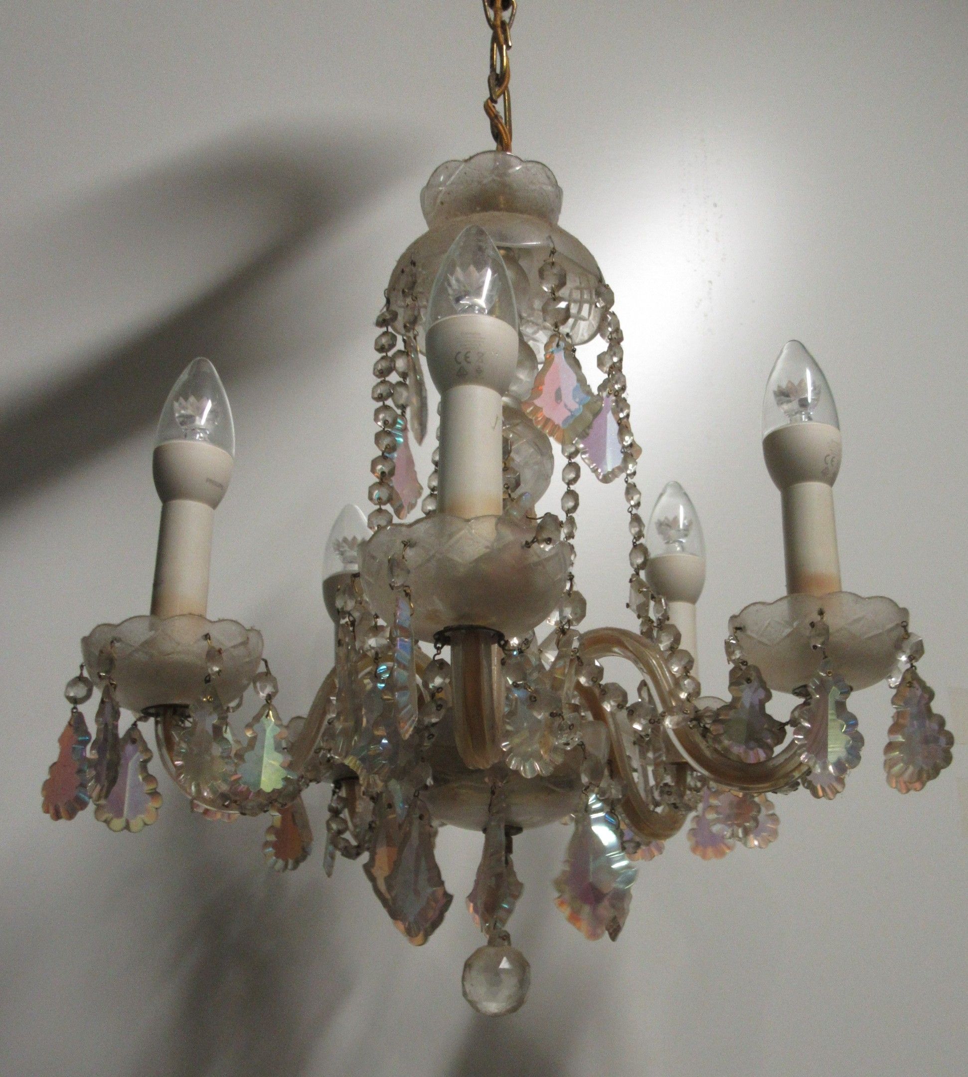 Chandelier with iridescent pendants. Work in the Milanese style (chips).