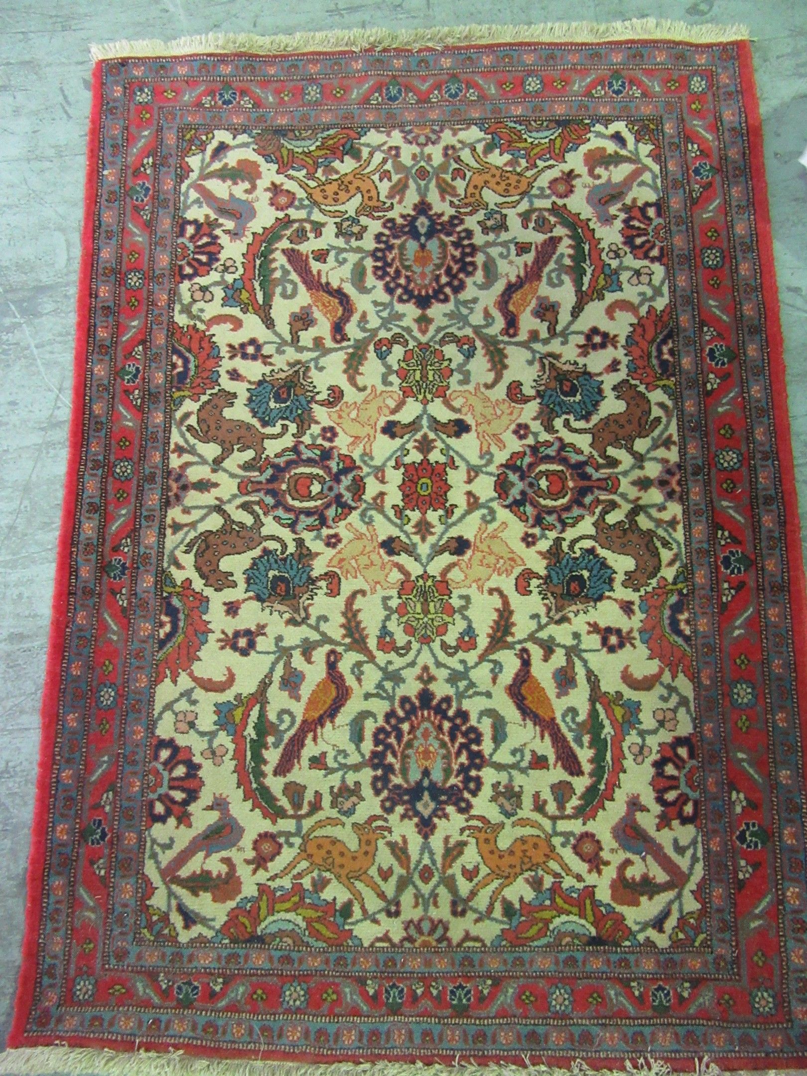 Two modern oriental rugs. One Naïn carpet, cream background (wear).