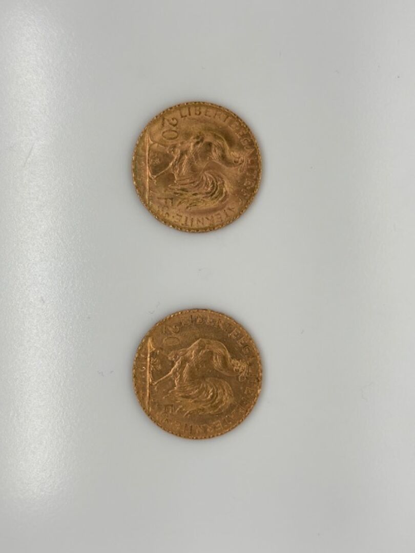 2 PIECES of 20 Francs gold, 1867 and 1851