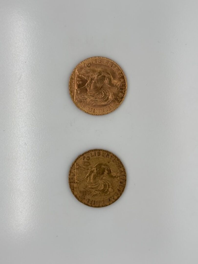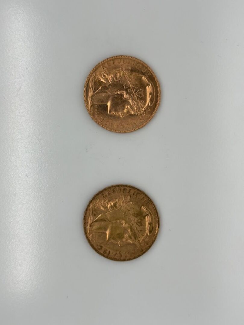 2 PIECES of 20 Francs gold, 1907 and 1914
