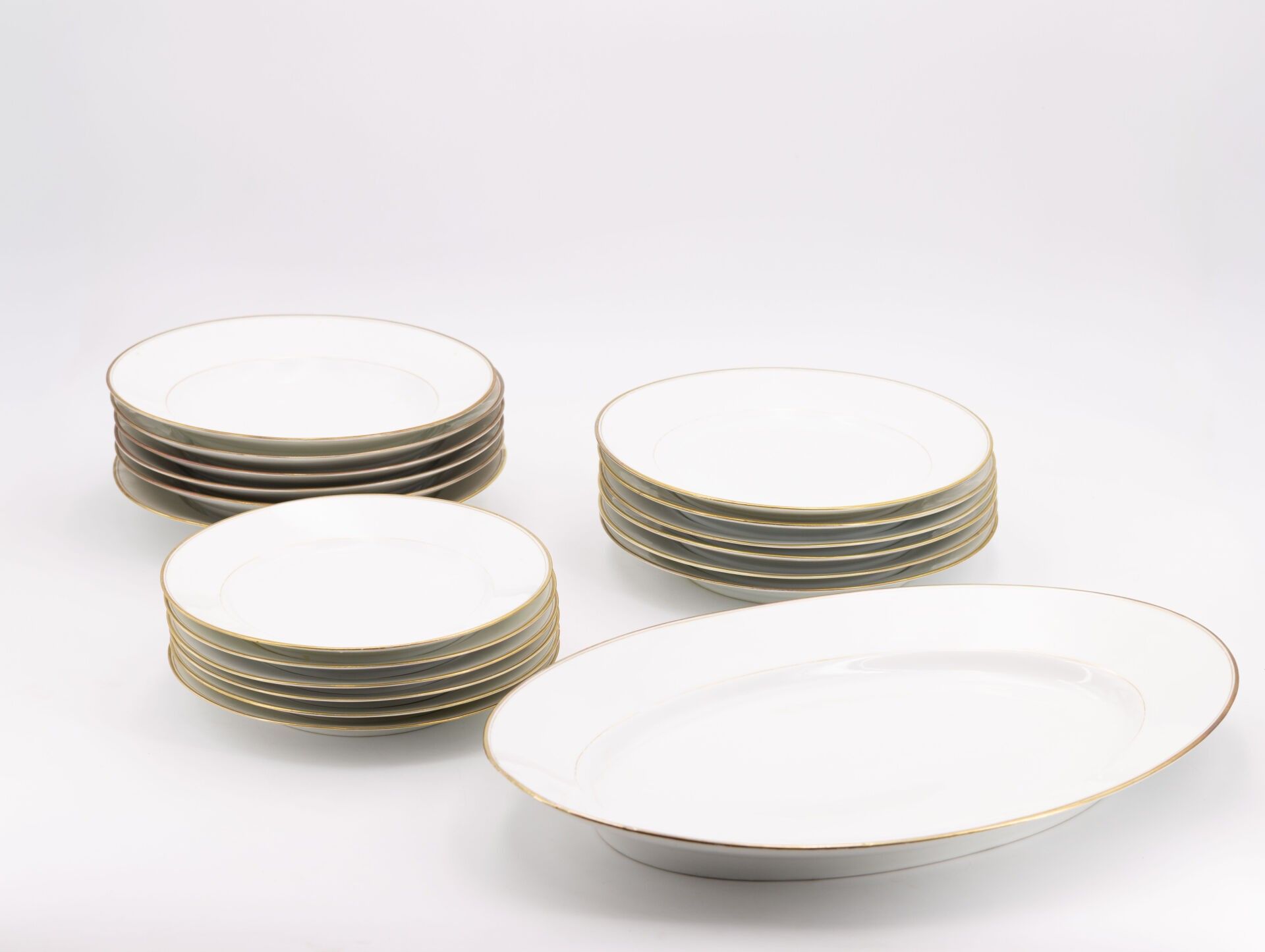 PORCELAIN TABLE SET with gilded fillet comprising :