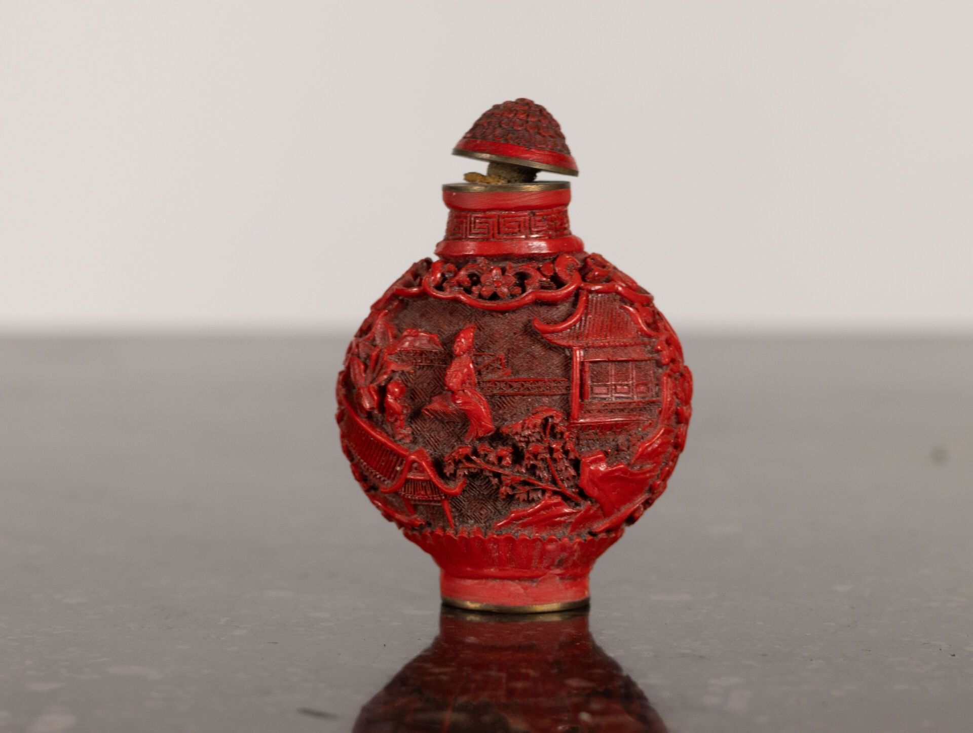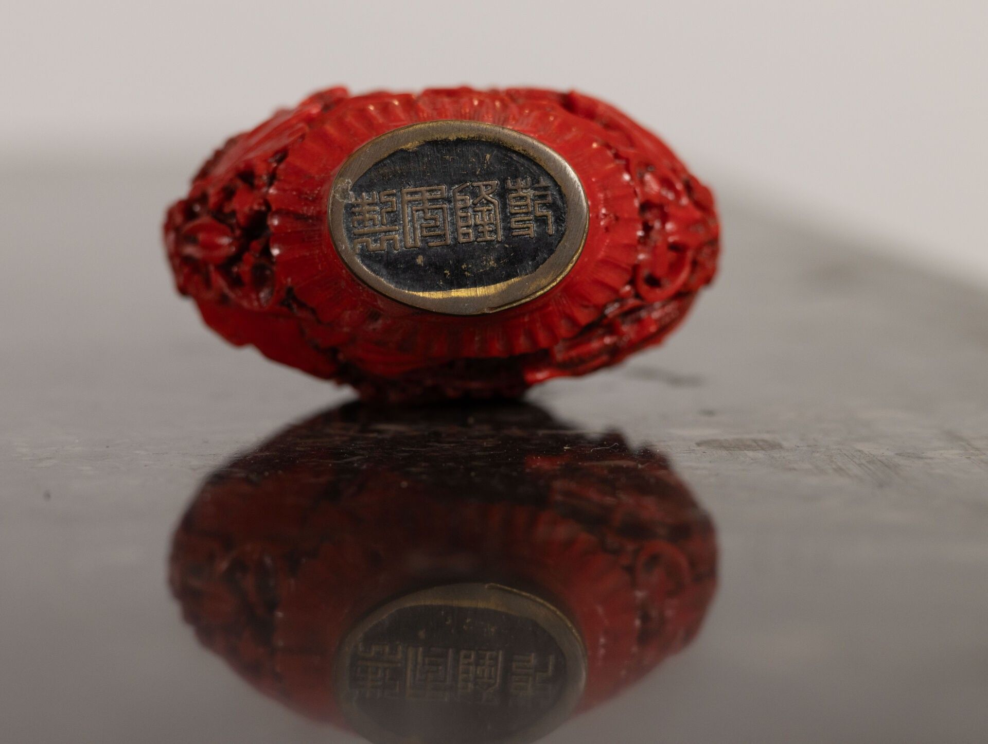 CHINA - Carved lacquer FLACON-TABATIERE decorated with a mus…