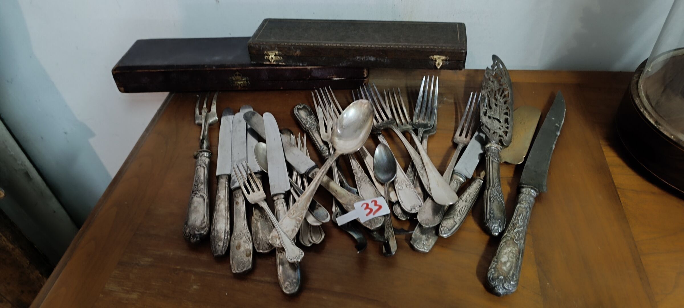 Set of cutlery with embossed silver handles. SOLD ON SITE AT 2 PM. EXHIBITION BEFORE THE SALE FROM 2 PM TO 3 PM. COLLECTION AT THE END OF THE SALE FOR THOSE PRESENT ON SITE AND BY APPOINTMENT FOR OTHERS WITHIN A MAXIMUM OF 15 DAYS. AFTER THIS PERIOD THE ITEMS WILL BE CONSIDERED ABANDONED.