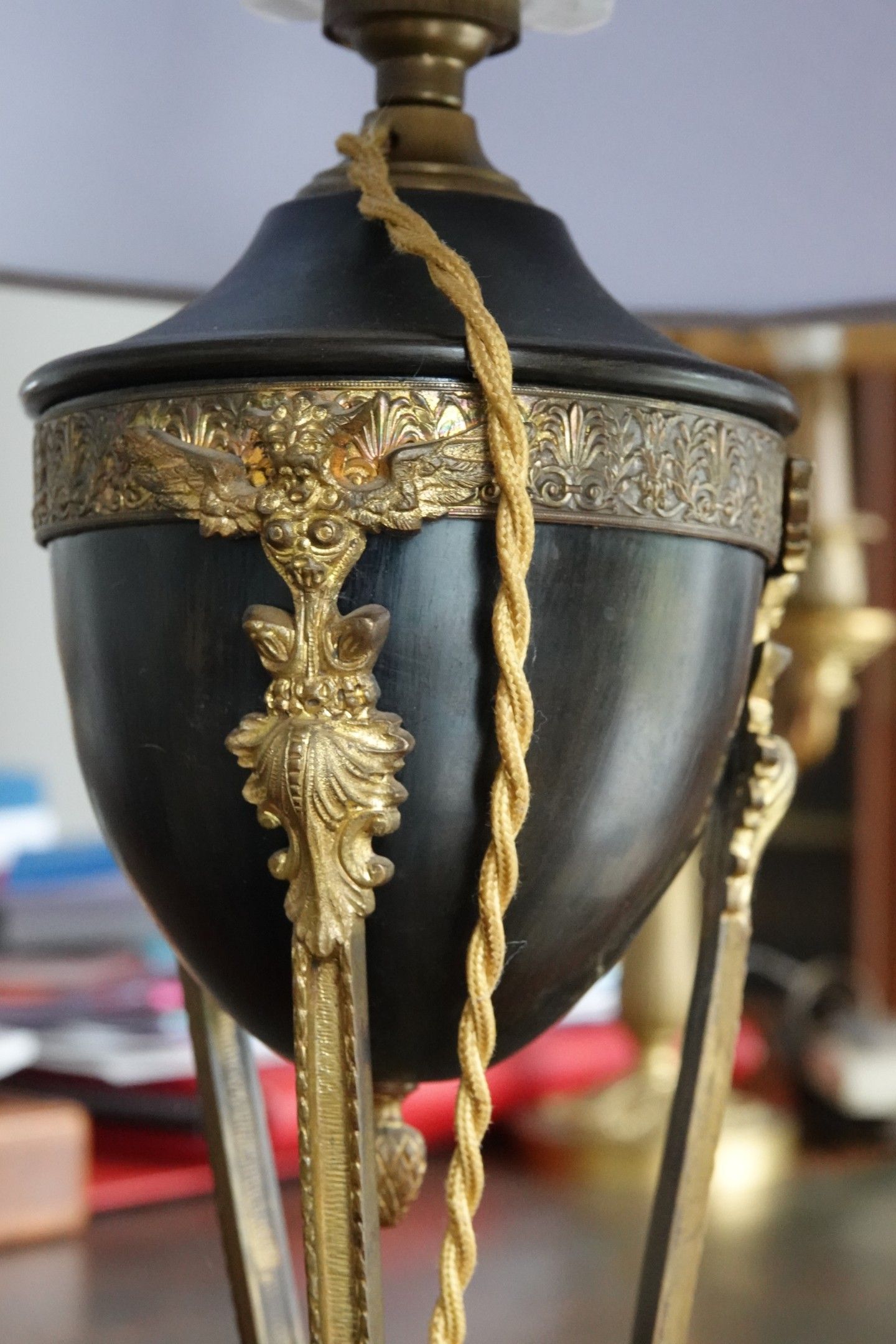 Metal LAMP decorated with an ovoid urn resting on a tripod s…