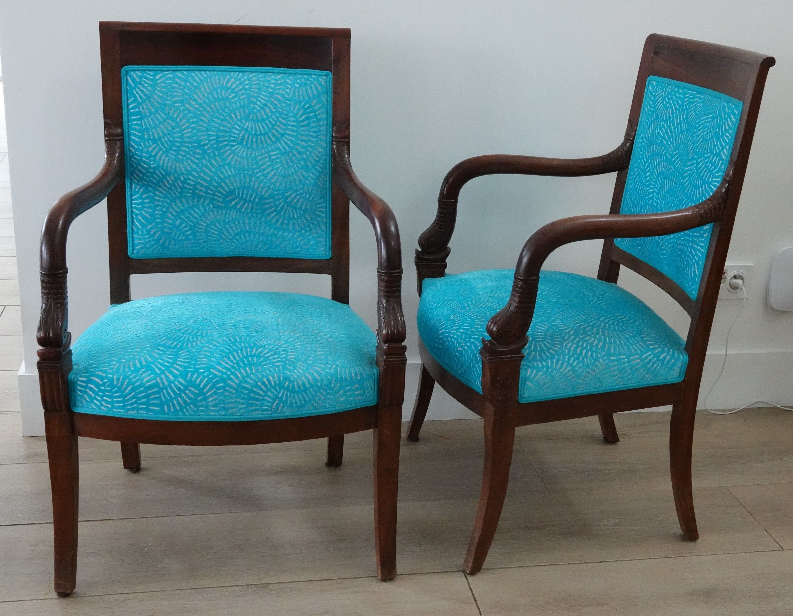 PAIR OF ARMCHAIRS in mahogany and mahogany veneer with arm b…
