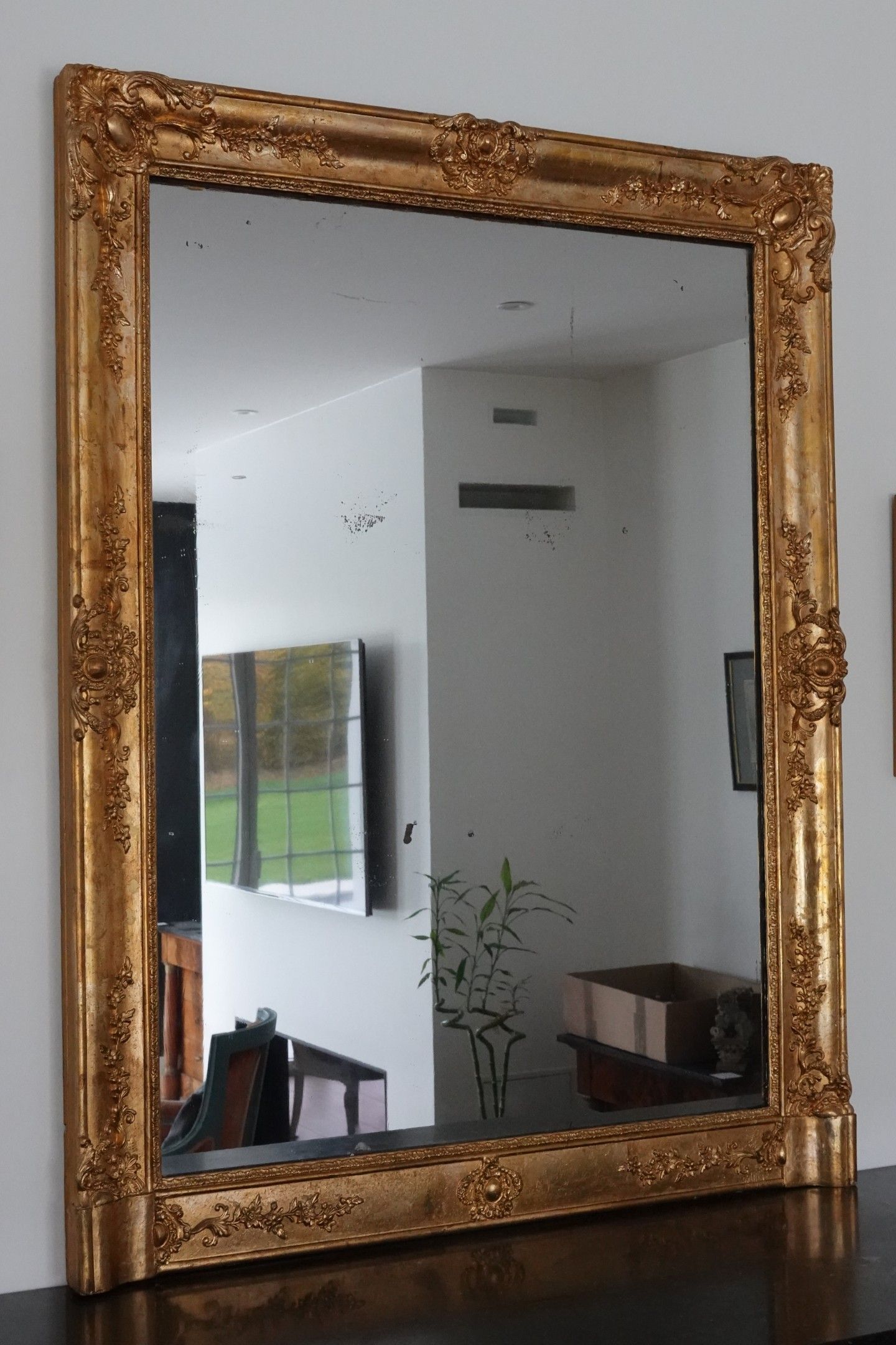 Gilded stuccoed wood mantel mirror decorated with acanthus l…