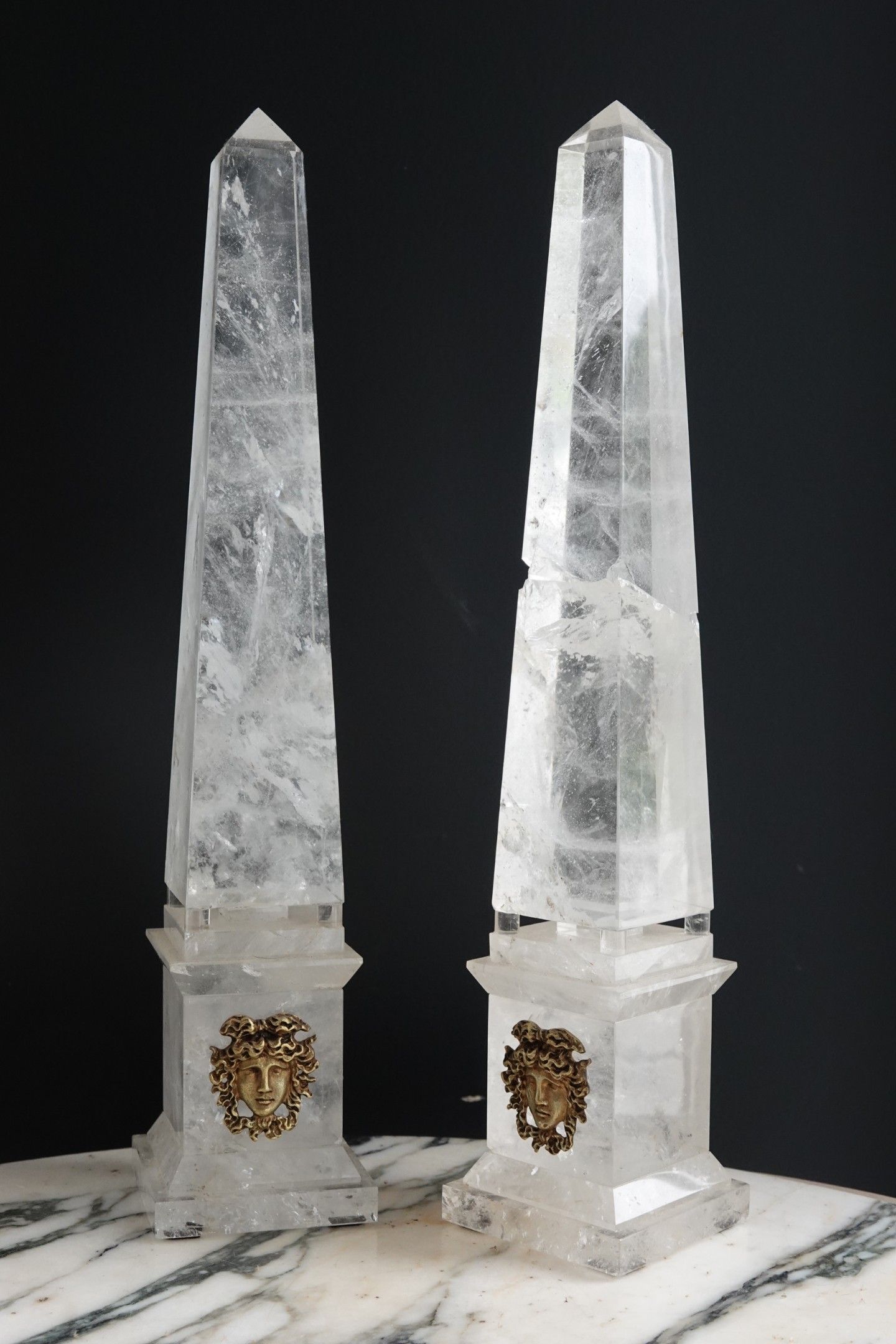 Pair of rock crystal OBELISQUES decorated with a gorgon and …
