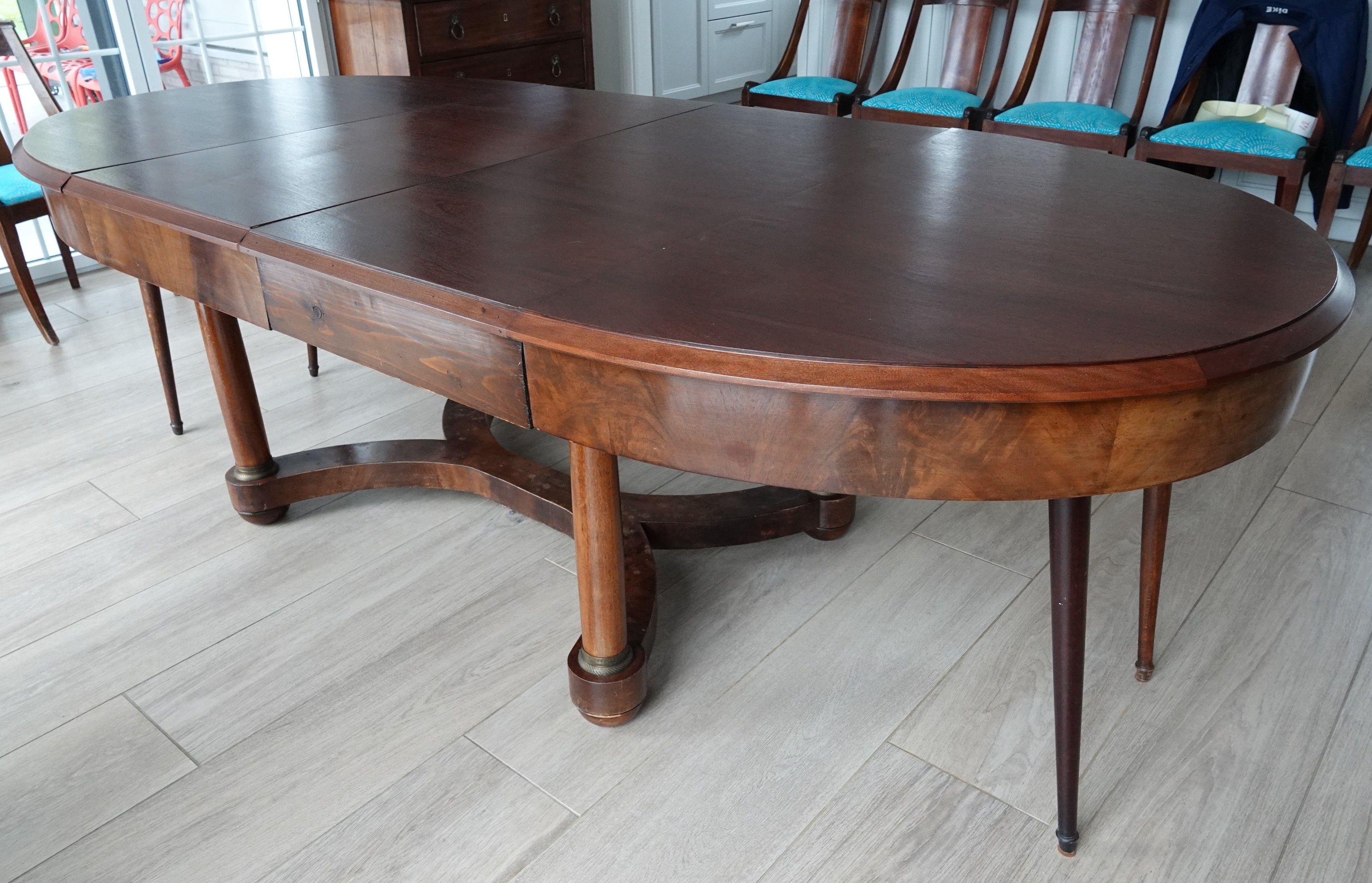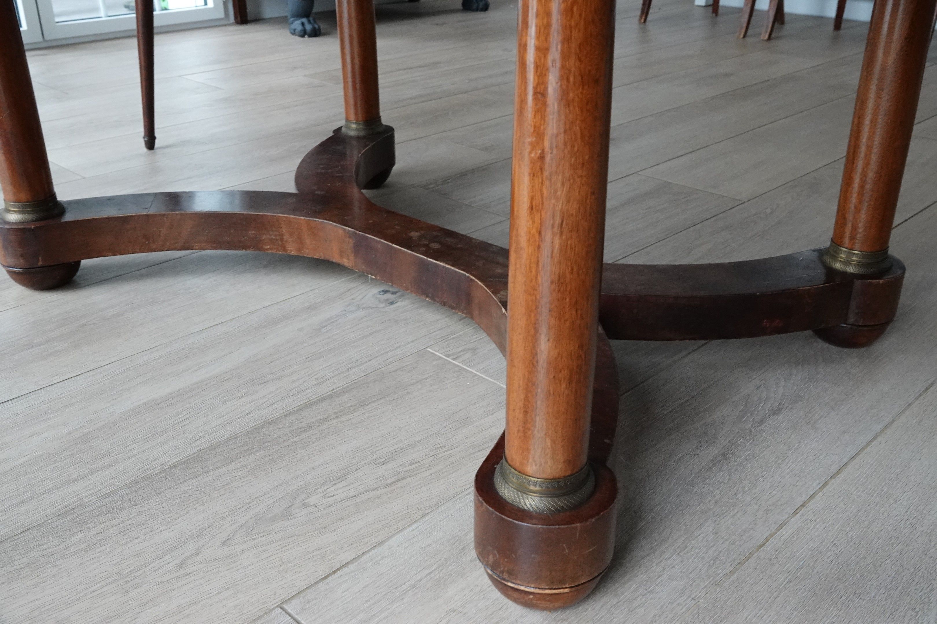 A mahogany and mahogany veneer table with a entablature rest…