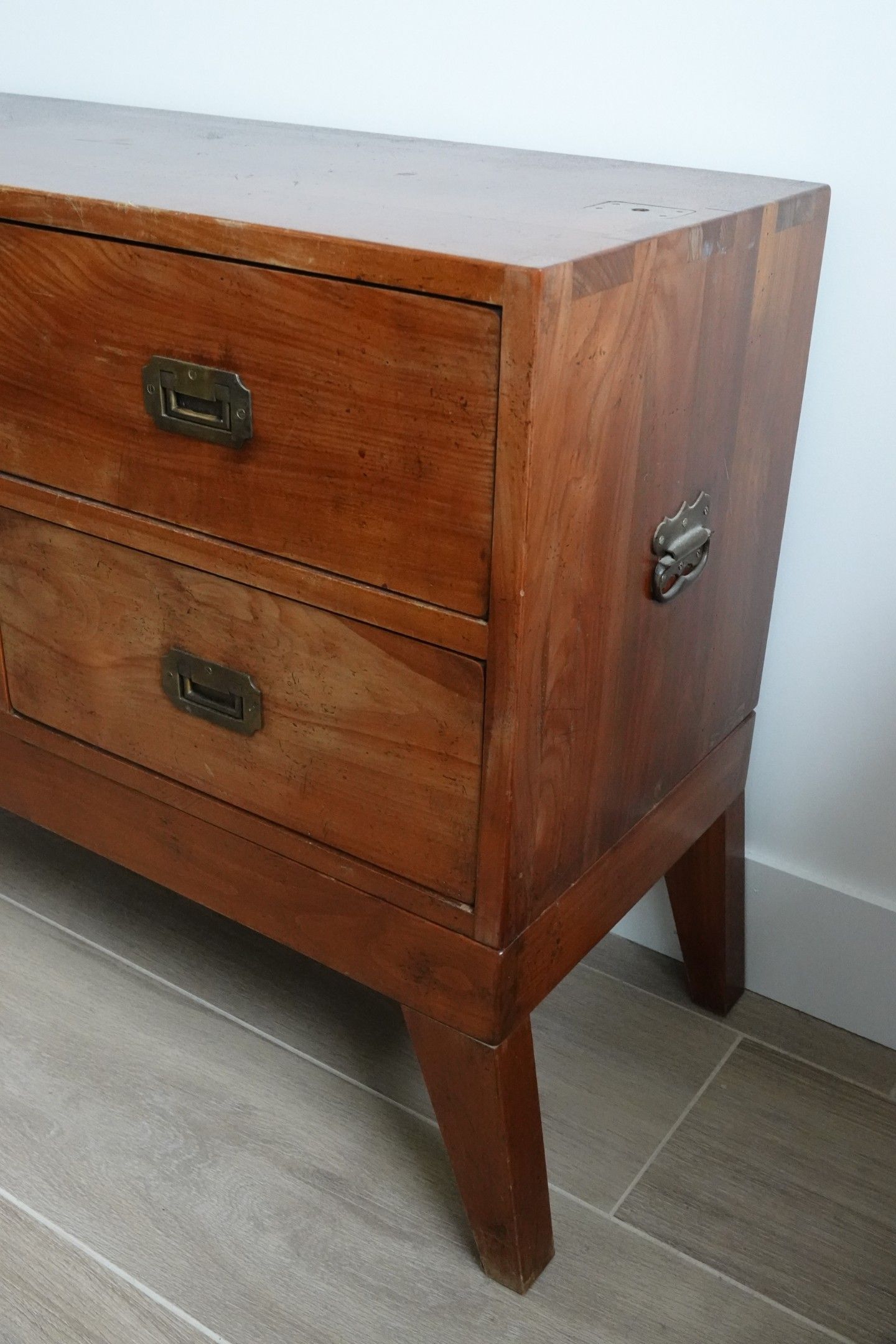 Cherry wood marine COMMODE opening to three drawers arranged on two rows.