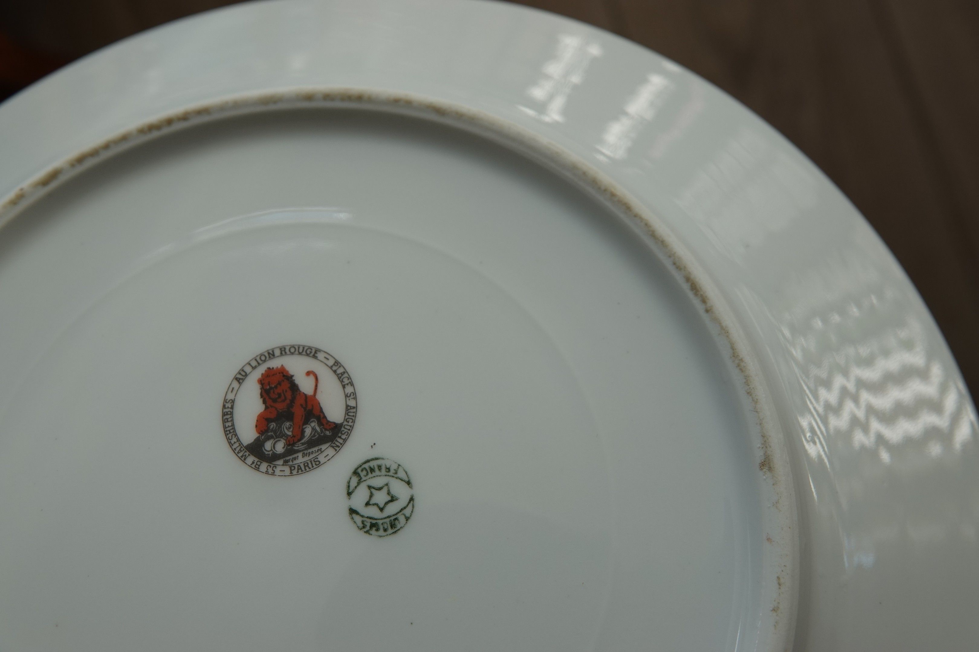 Porcelain SERVING SET. Au Lion Rouge. Place St Augustin.