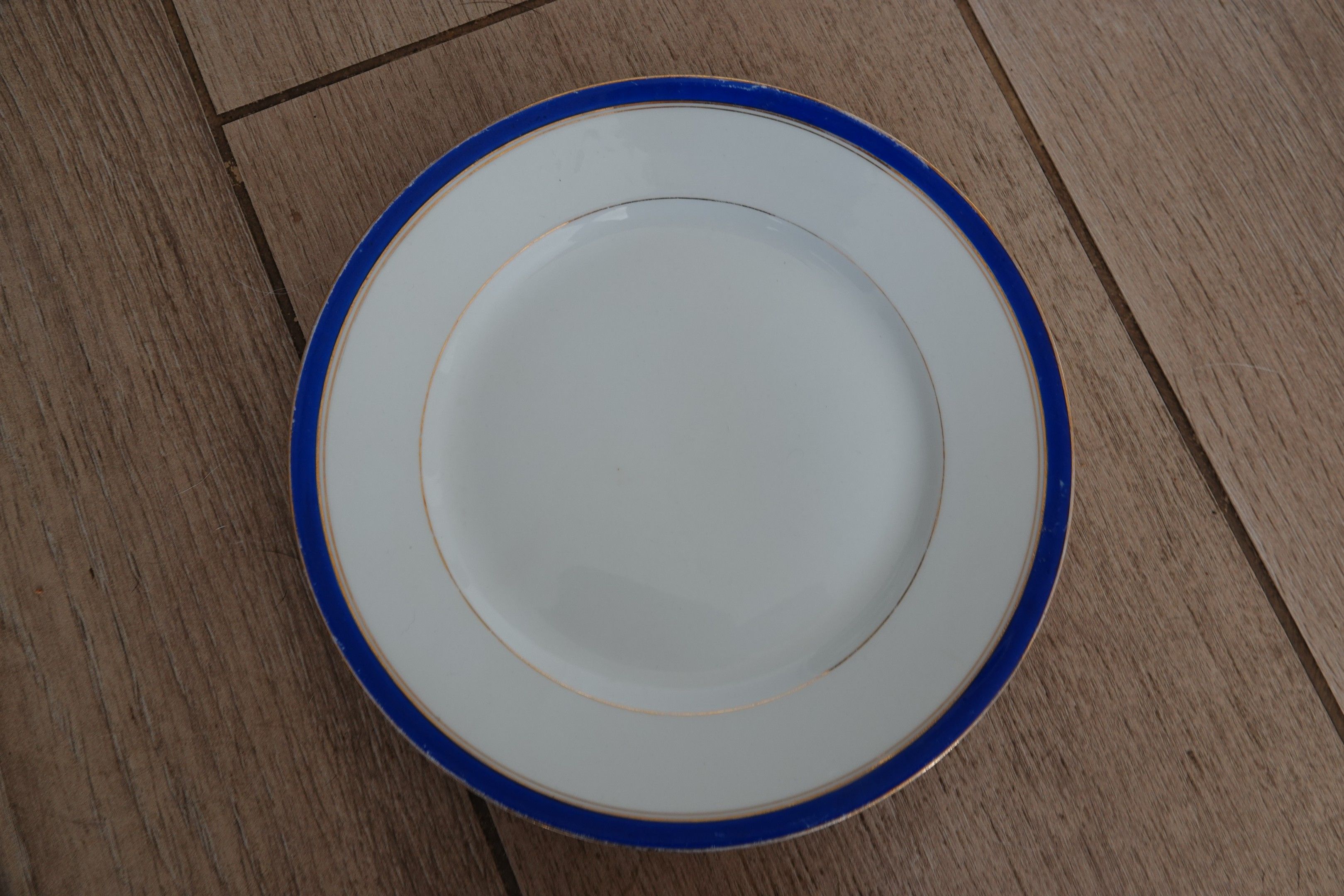 Decorated with royal blue and gold edging.