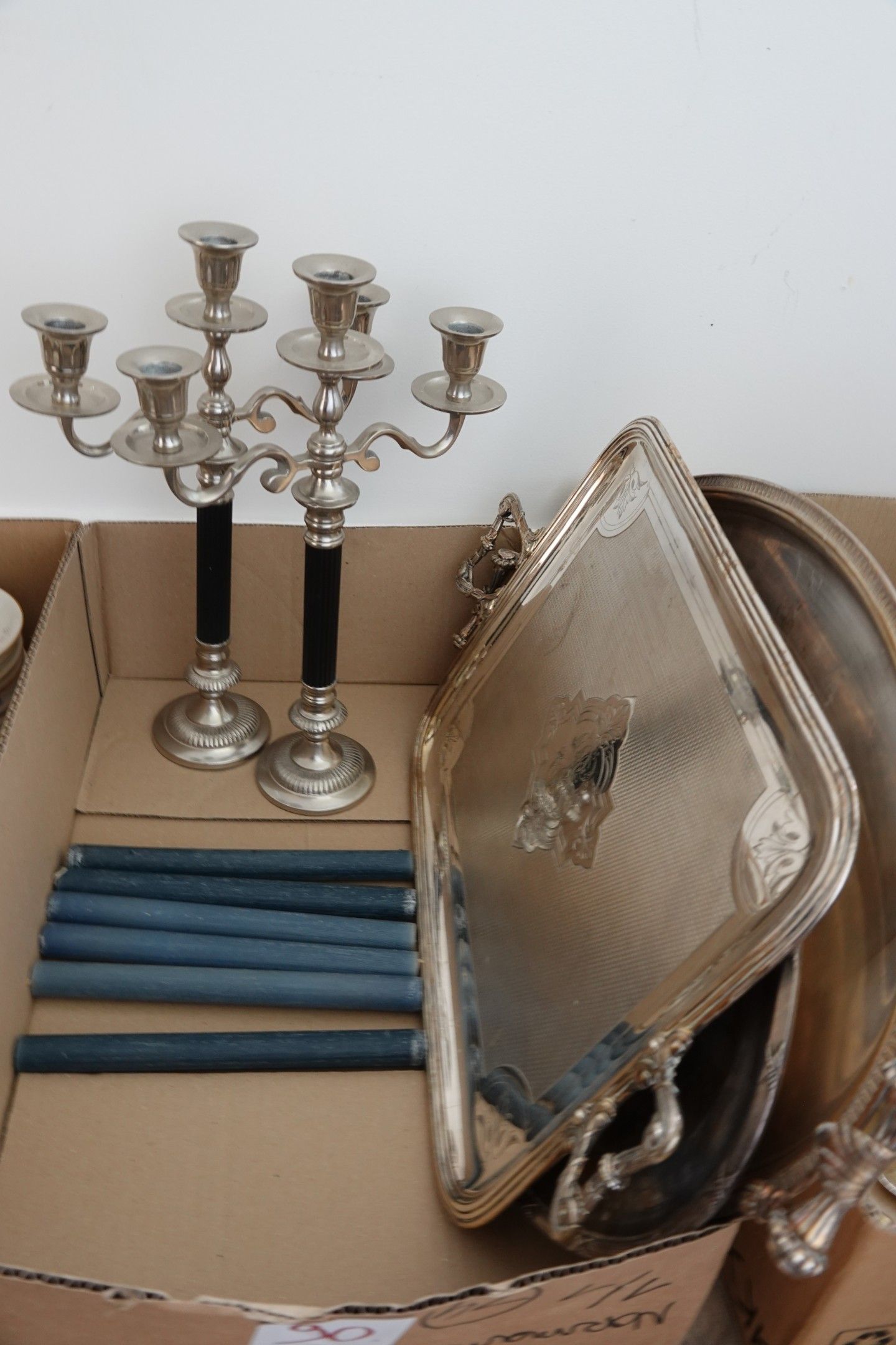 - pair of three-light candelabra, the fluted shaft in black lacquered metal.